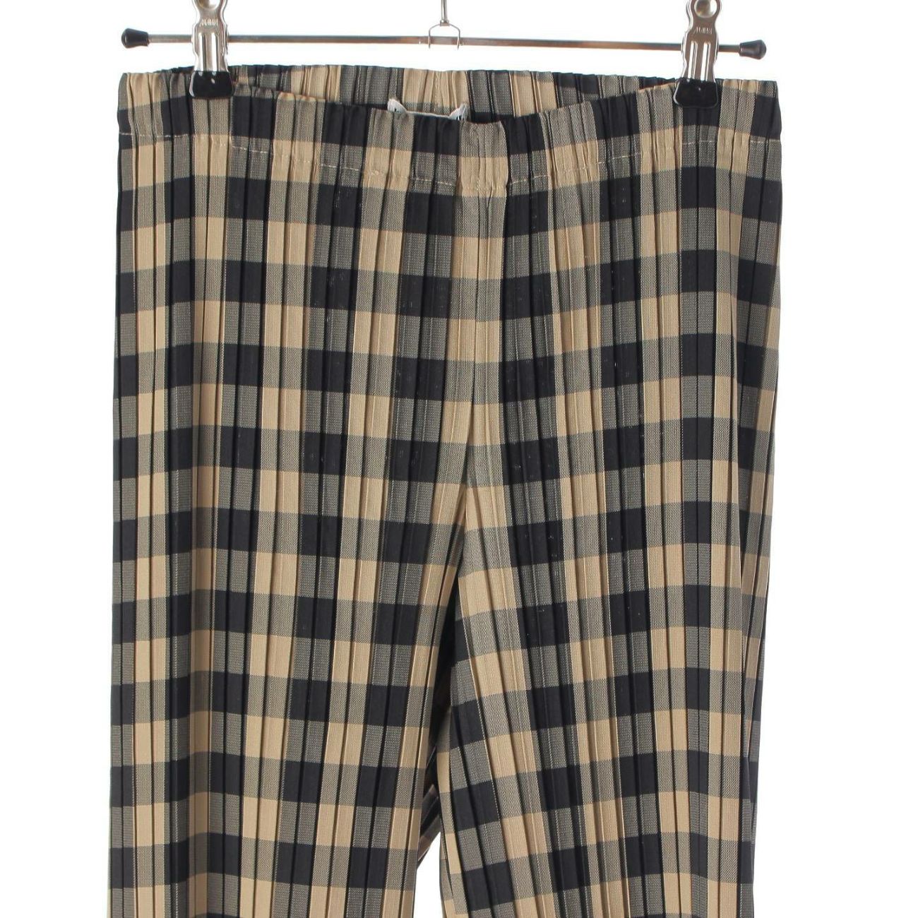 イッセイミヤケ プリーツ チェックパンツ ボトムス IM84FF914 ベージュ×ブラック M