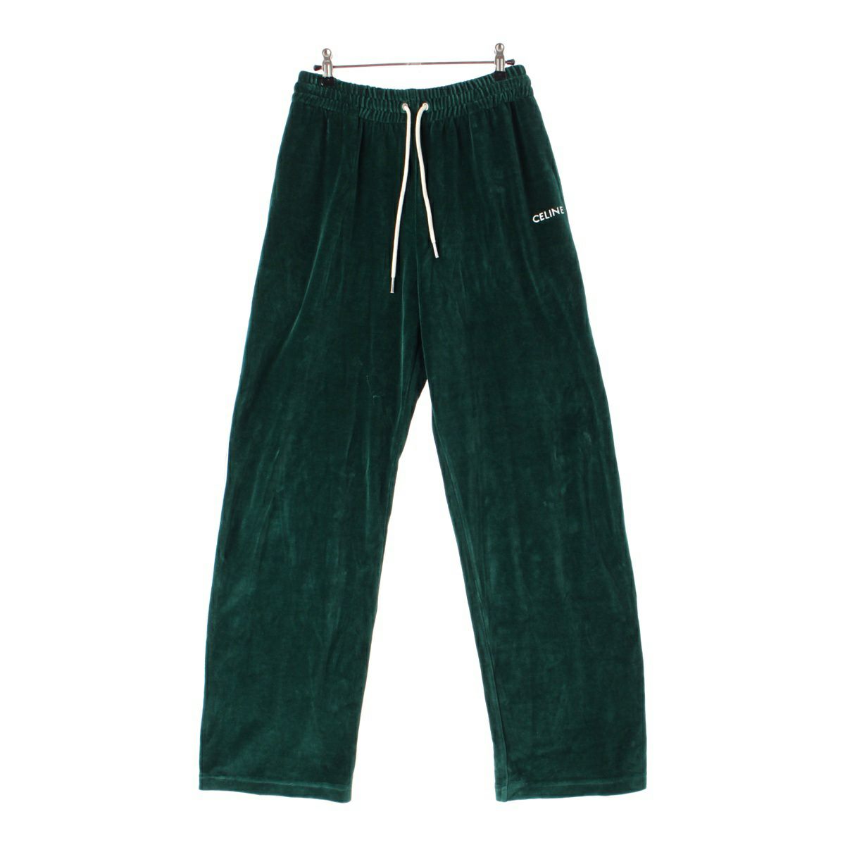 セリーヌ コットン ベルベット ロゴ ジャージ ジョギング パンツ トラックスーツ ボトムス 2Z403679I グリーン M