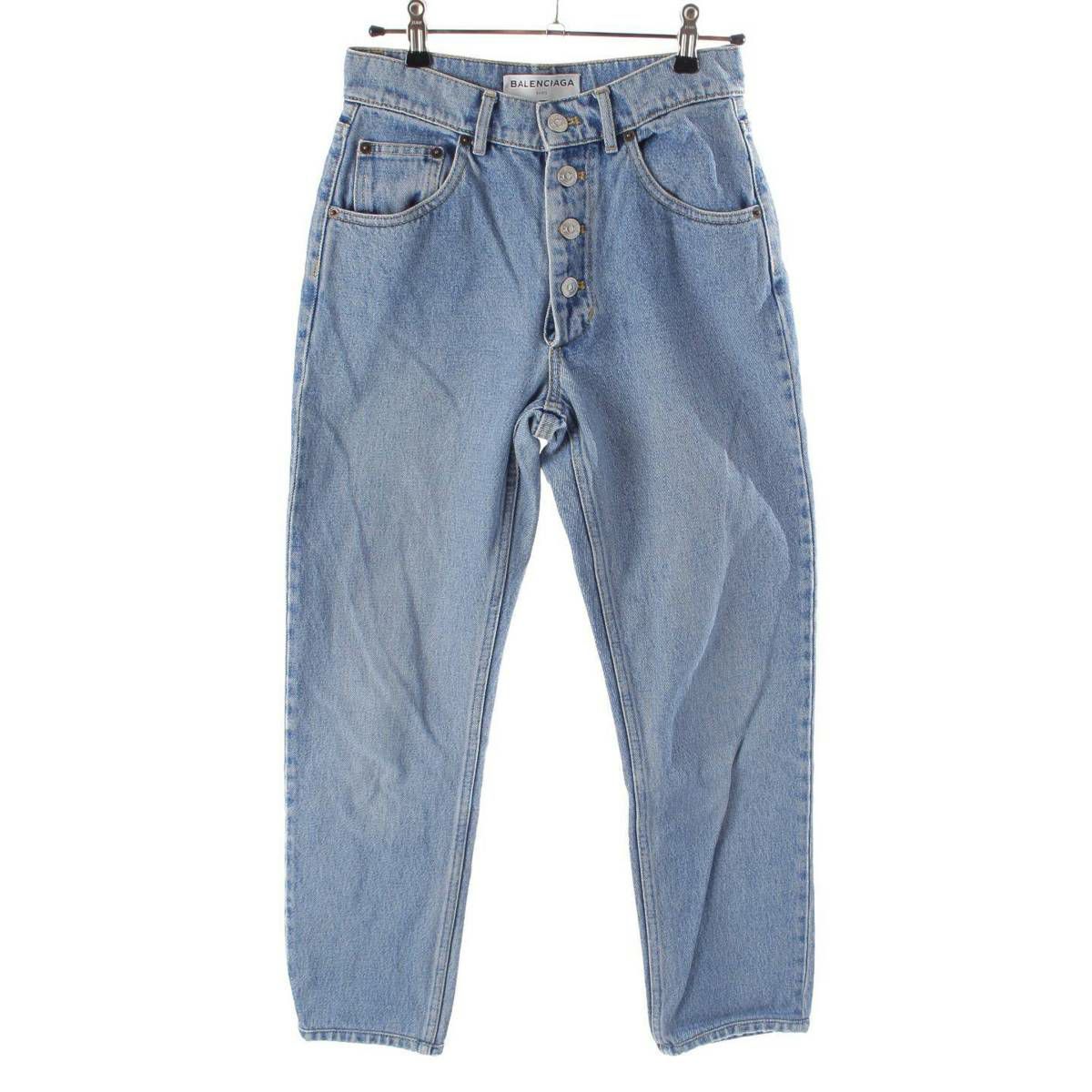 バレンシアガ 17年 ハイウエスト ストレート デニム パンツ ボトムス 480014 ブルー 34
