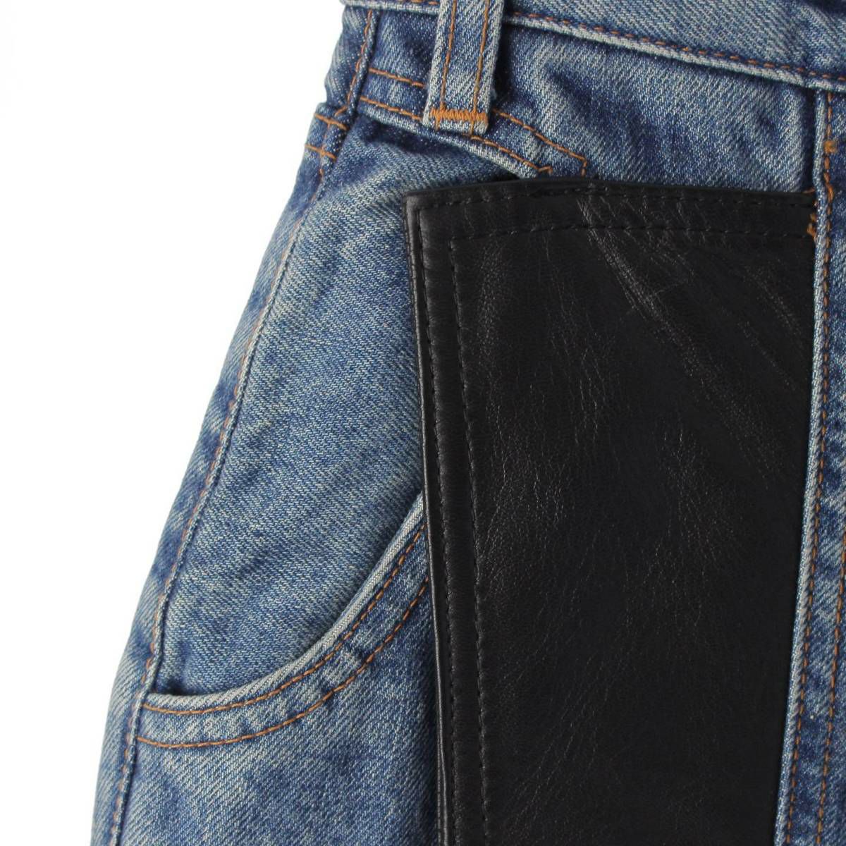 セリーヌ 19年 レザーライン デニムパンツ ジーンズボトムス N049 789D 07IP ブルー 24