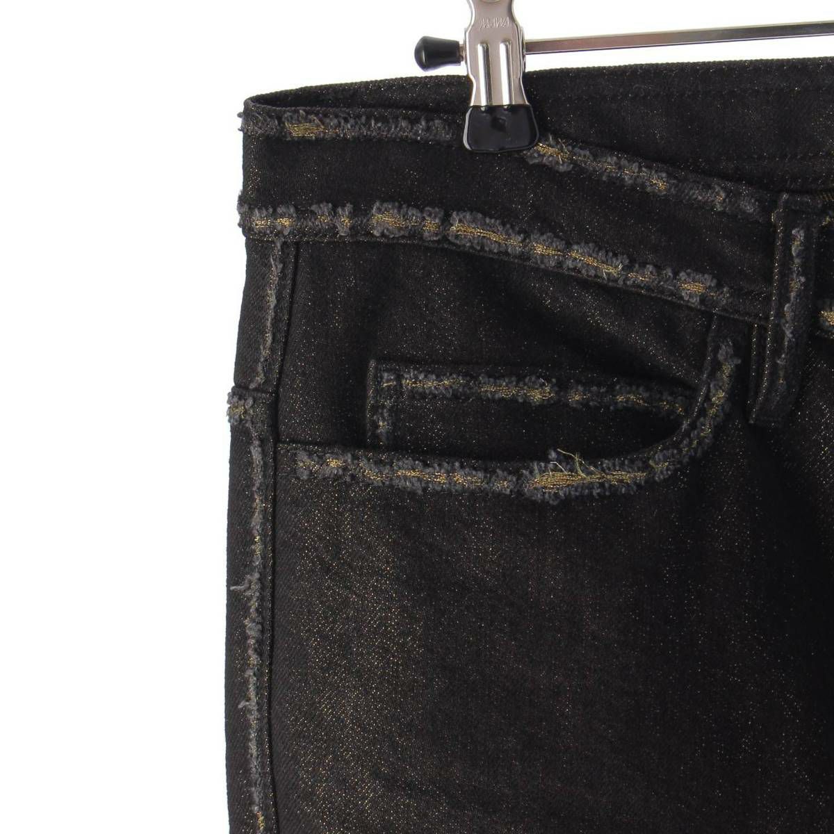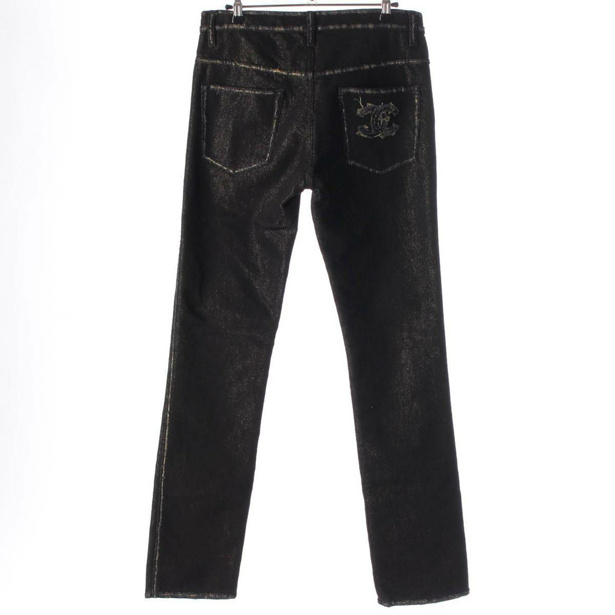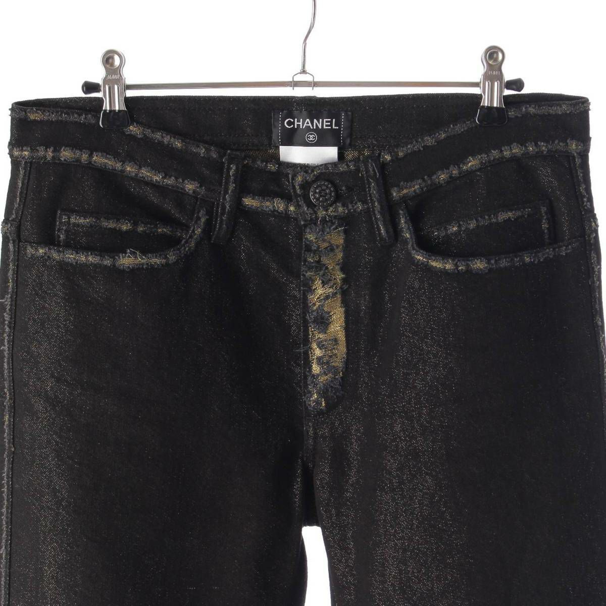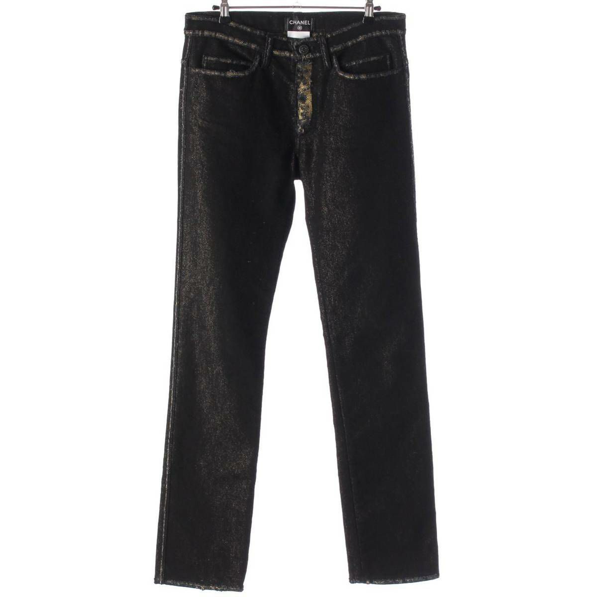 シャネル ココマーク ダメージ加工 デニムパンツ ジーンズ P39654 ブラック×ゴールド 40