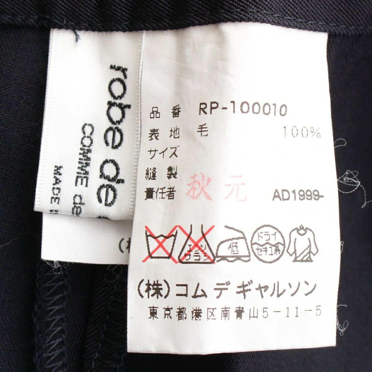 他の画像を見る robe de chambre COMME des GARCONS ローブドシャンブルコムデギャルソン AD1999 00SS ウール 平面 変形 巻き ラップ パンツ RP-100010 ブラック ダークネイビー お気に入りに登録する 当店特別価格 ¥ 18,700 税込 円 17,000円