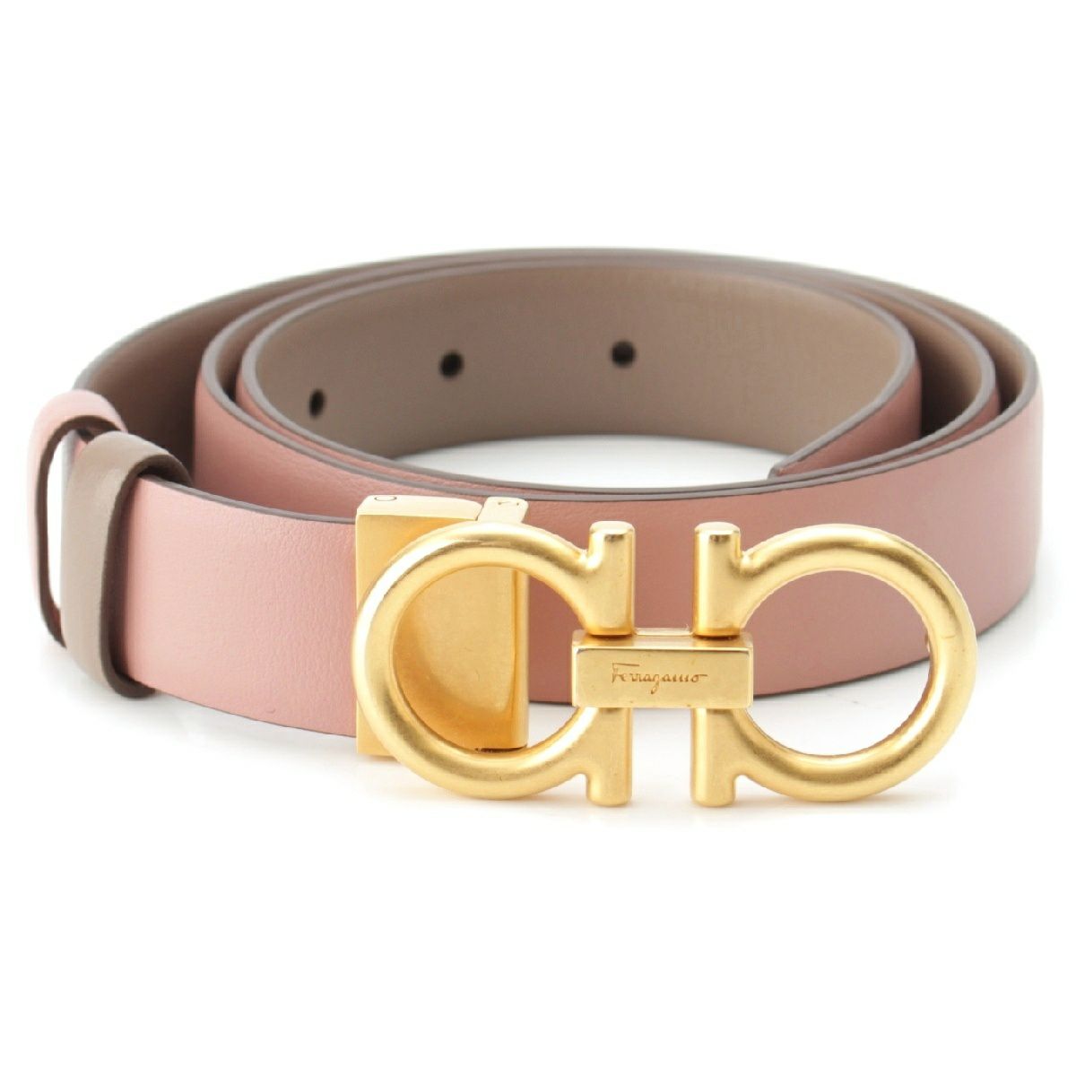 サルヴァトーレフェラガモ ガンチーニ レザー ロゴ ベルト ピンク ゴールド金具