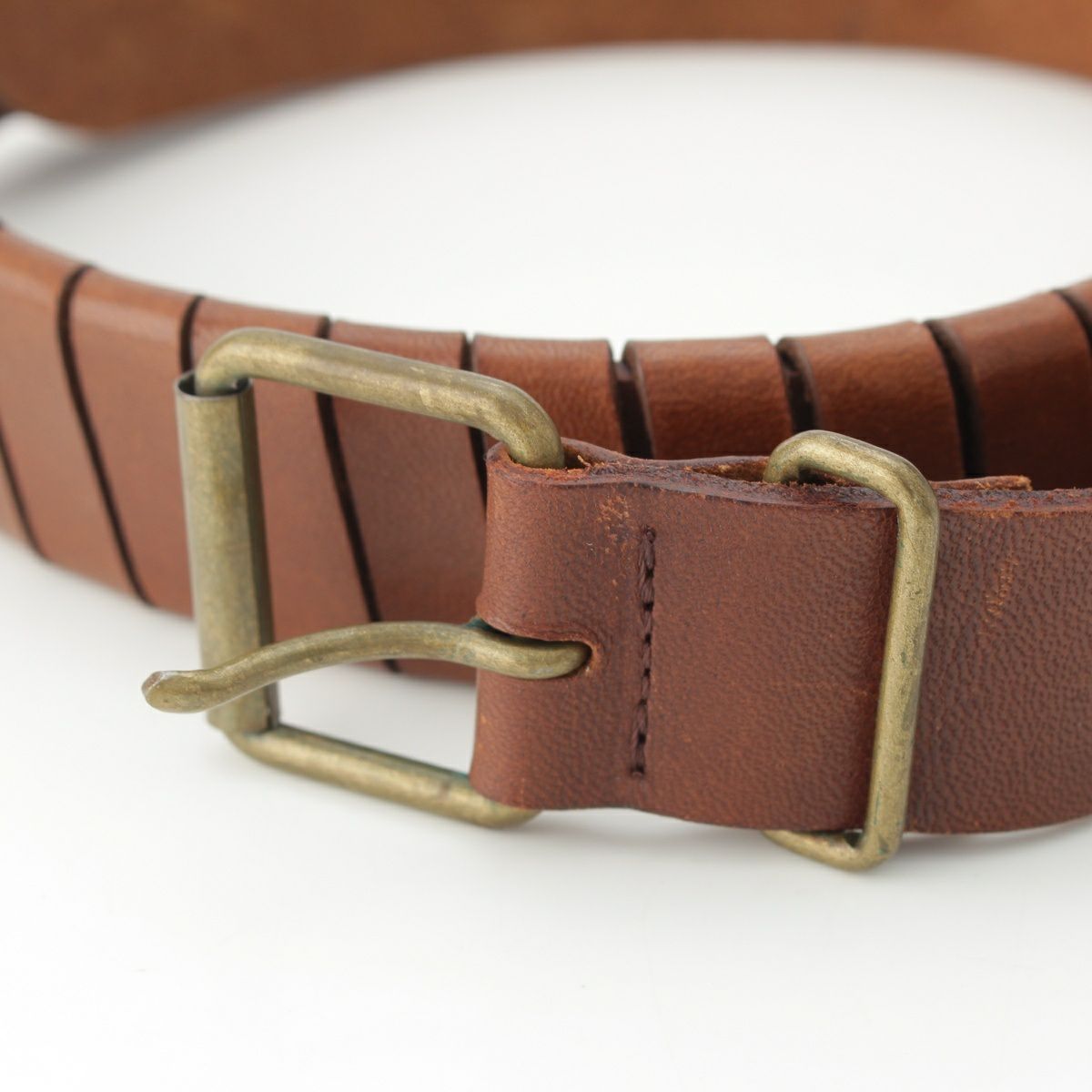 イッセイミヤケ 70s レザー 蛇腹 ツイスト ベルト ブラウン