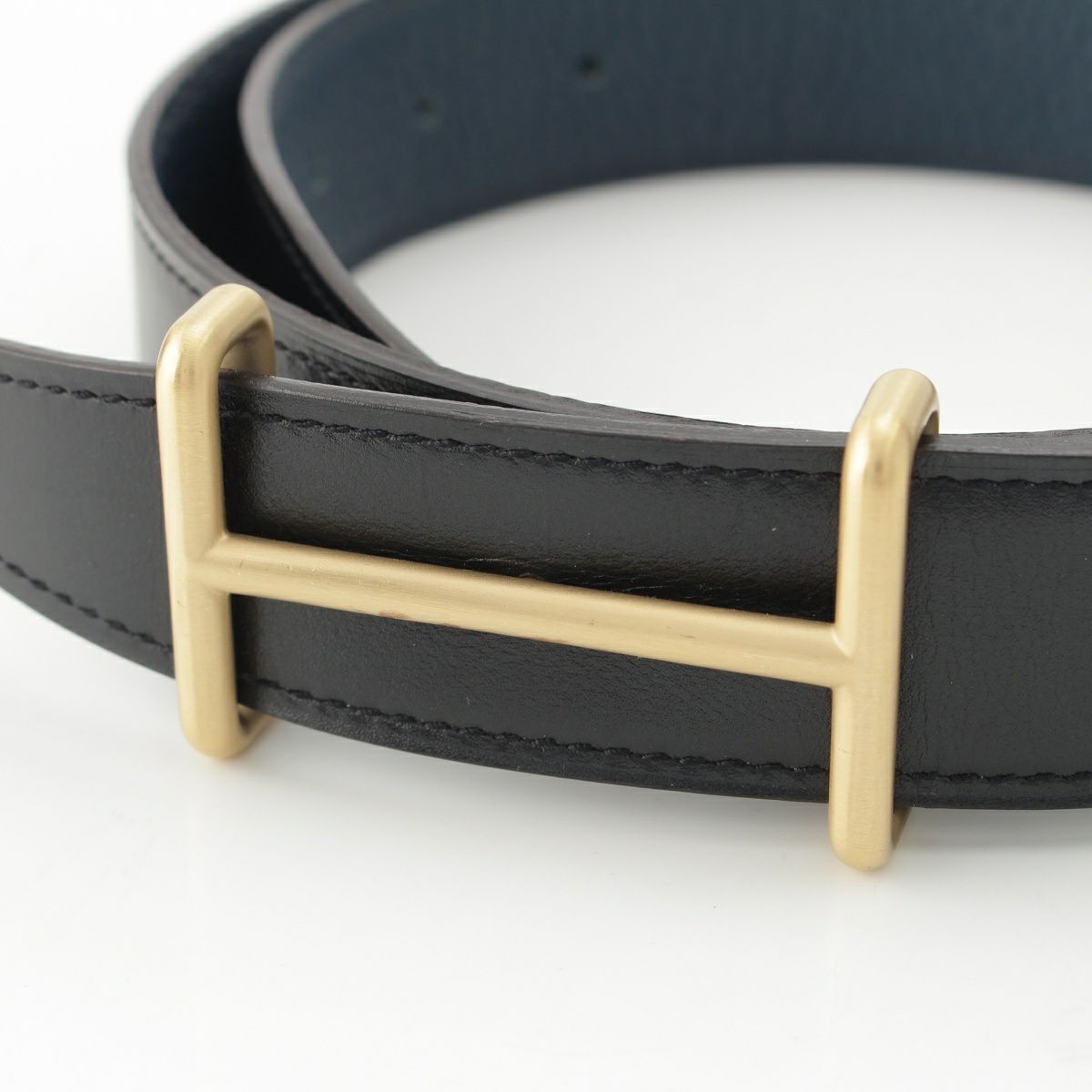 エルメス レザー Hバックル ゴールド金具 ベルト ブラック ブルー 80