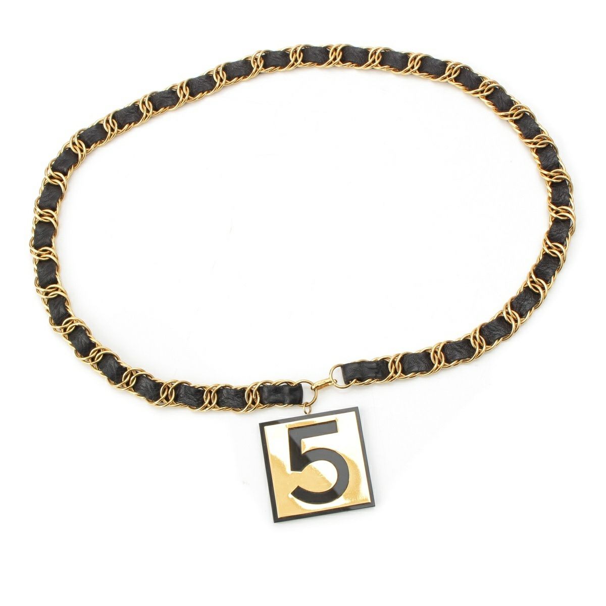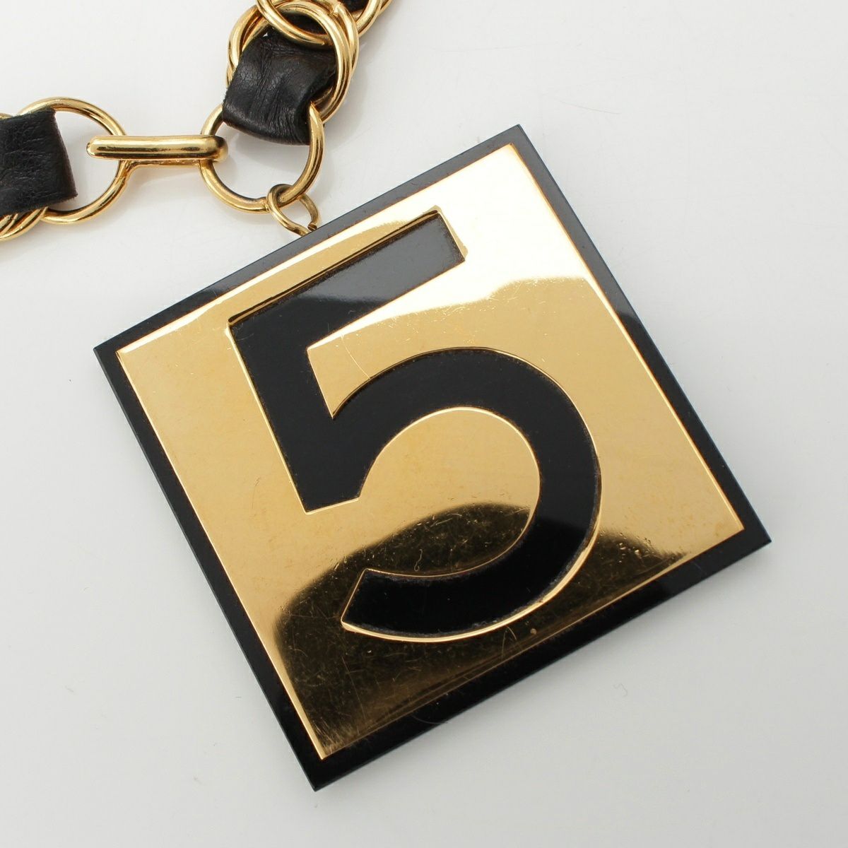 シャネル レザー GPゴールド 5 ナンバーファイブ ビックプレート チェーン ベルト ブラック