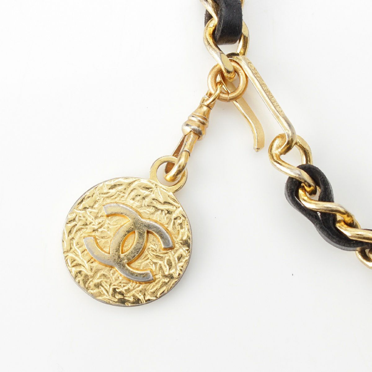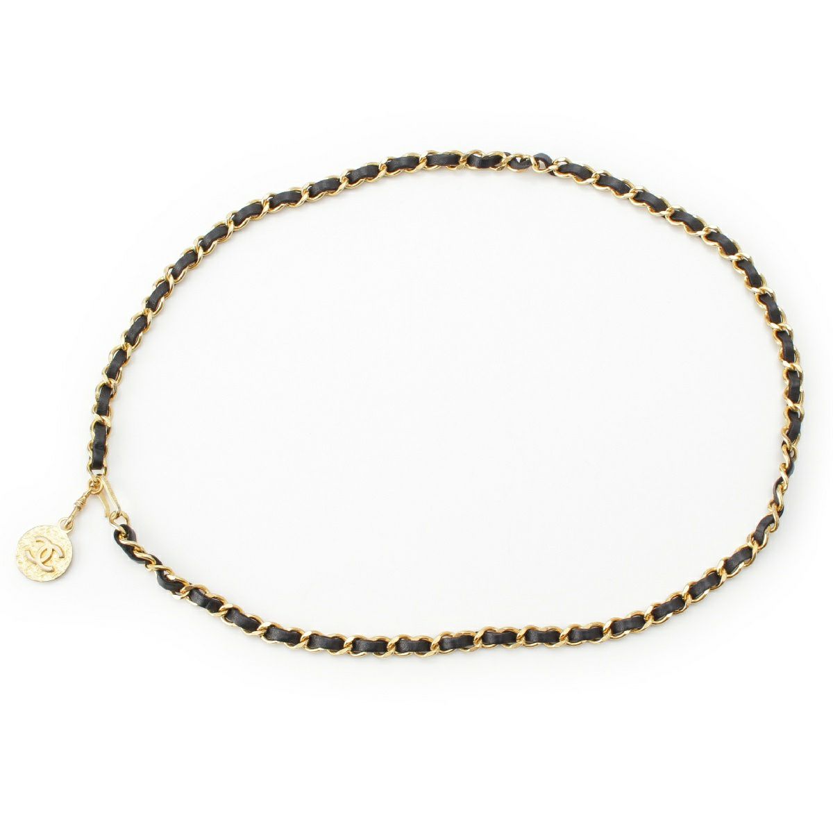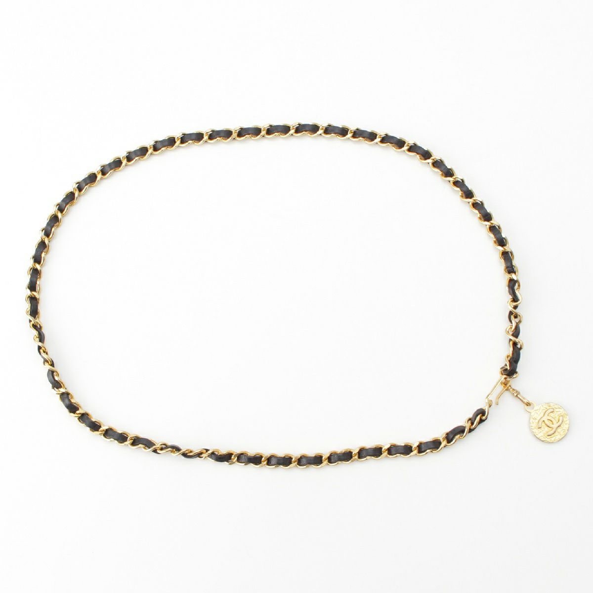 シャネル 1982 ココマーク ヴィンテージ レザーチェーン ベルト ゴールド金具 ブラック
