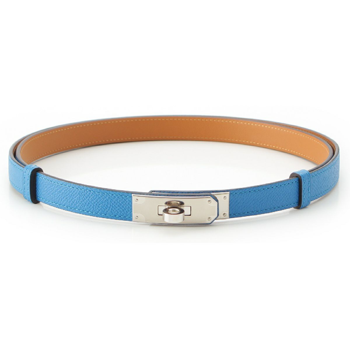 エルメス A刻印 ケリー18 エプソン ベルト シルバー金具 ブルー ブラウン