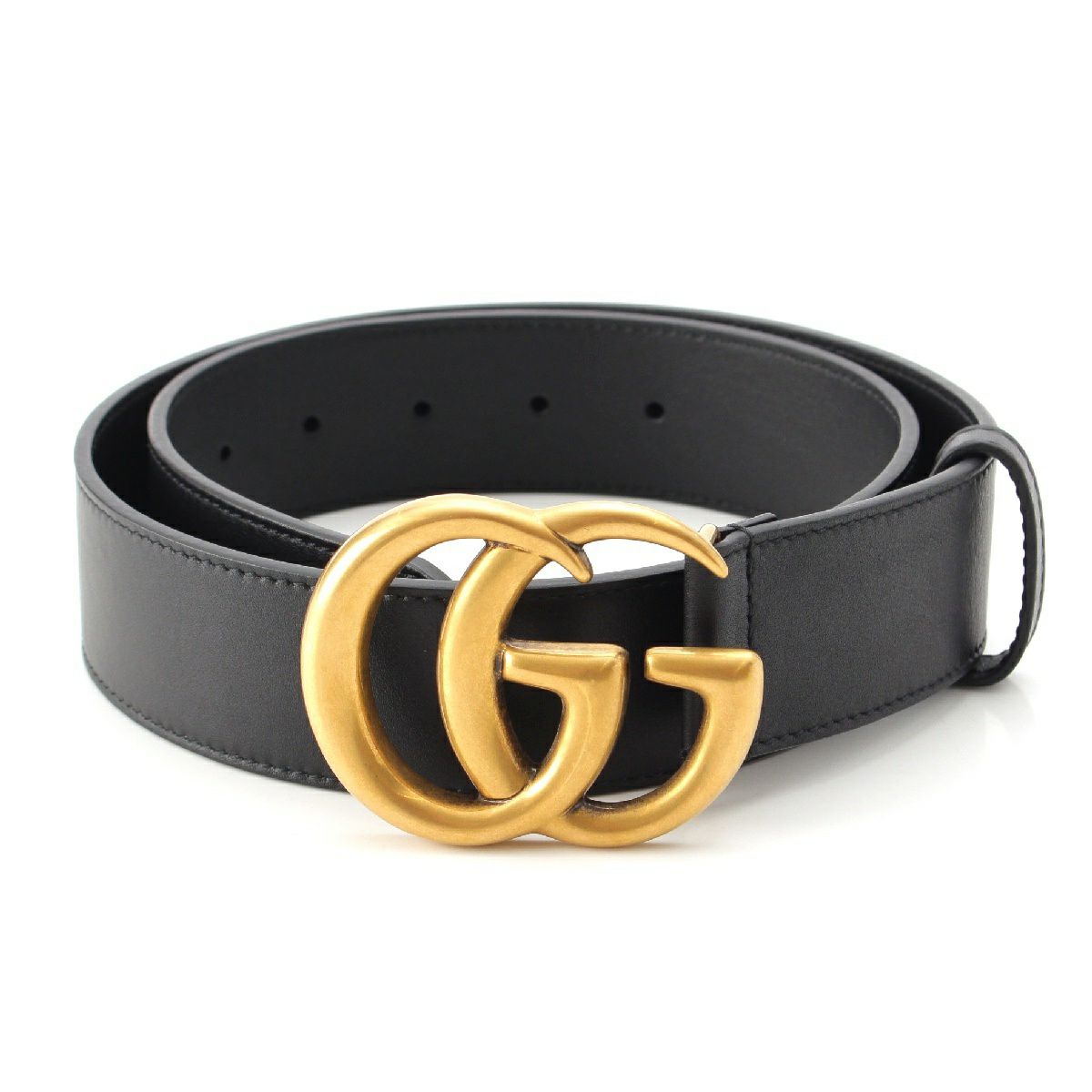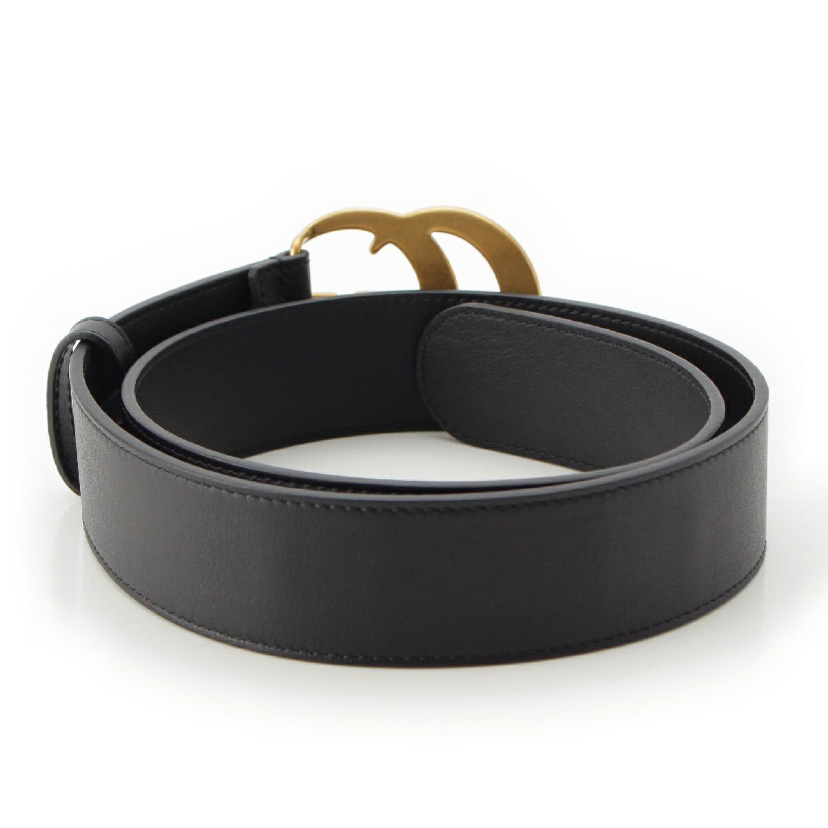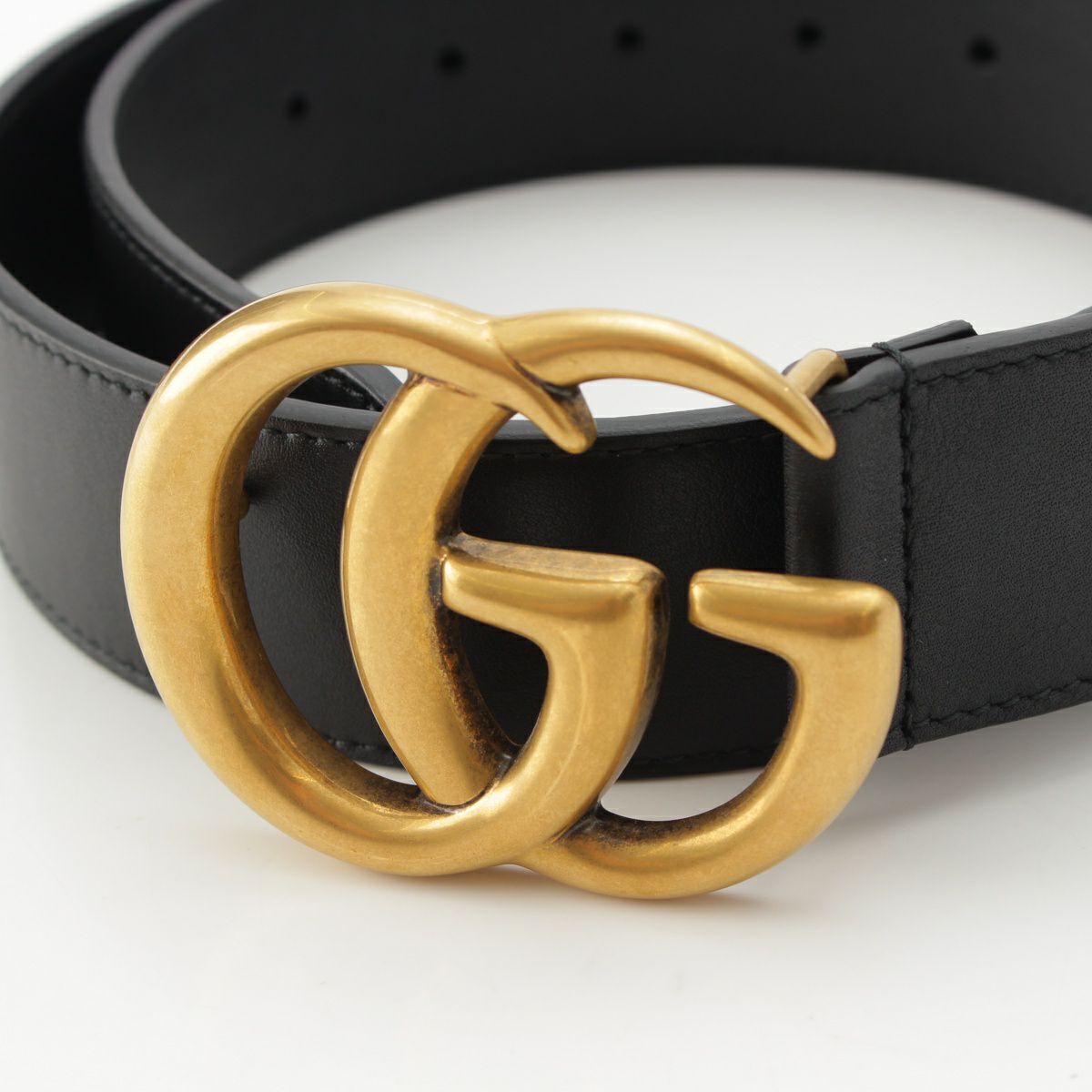 グッチ リエディション レザー ダブルG 2015 アンティーク金具 ワイド ベルト 400593 ブラック 80
