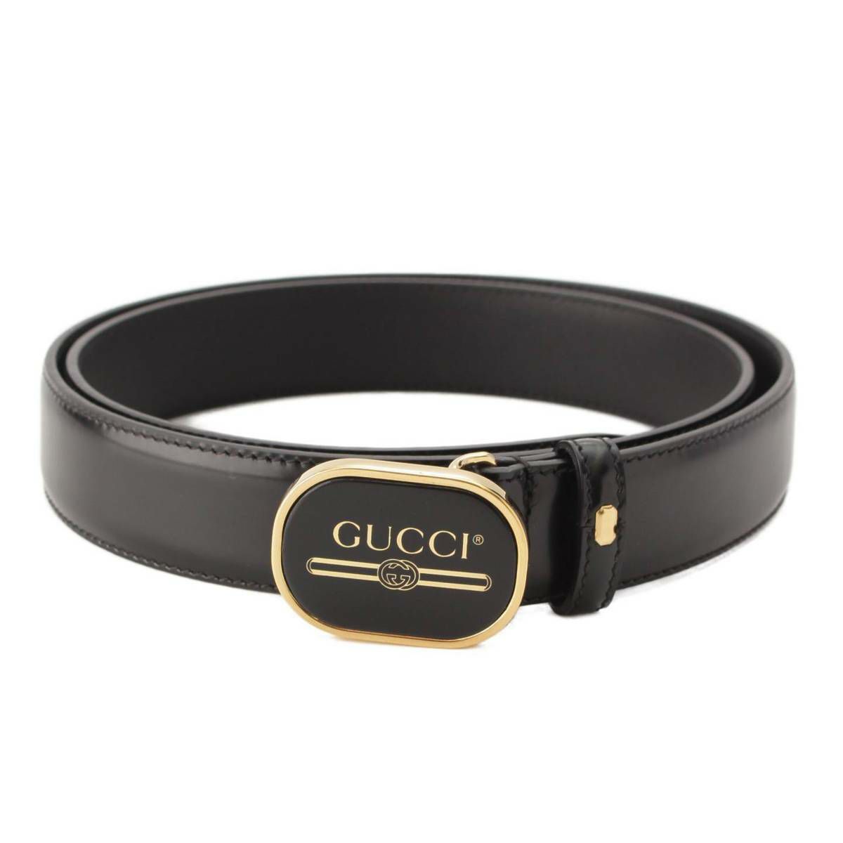 グッチ メンズ レザー ロゴ プレート ベルト 547754 ブラック 95/38