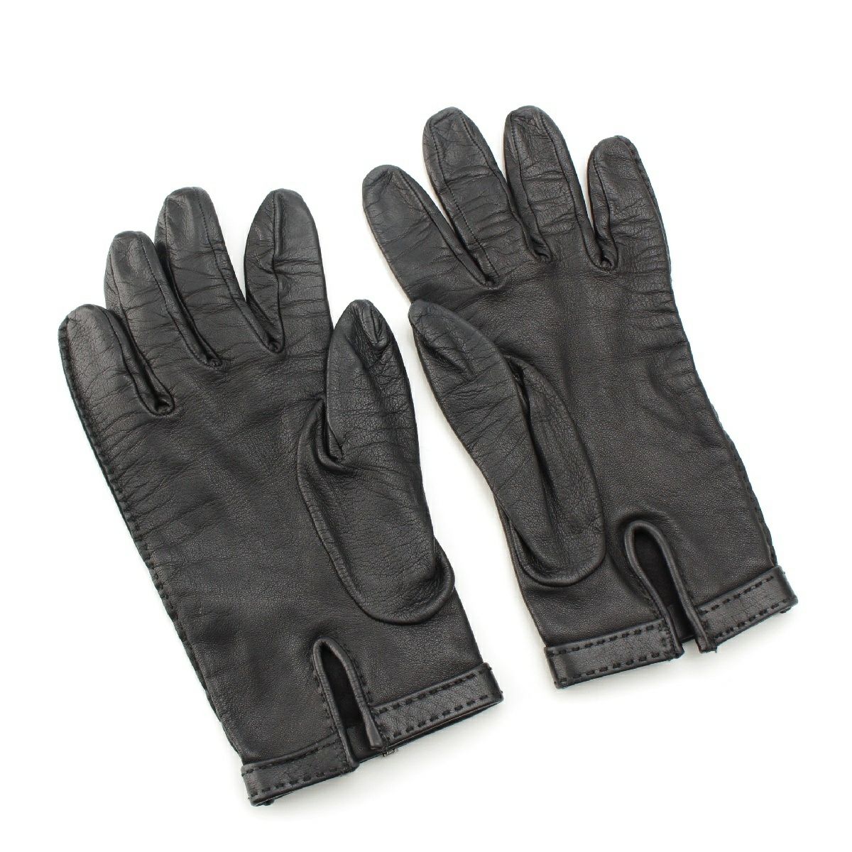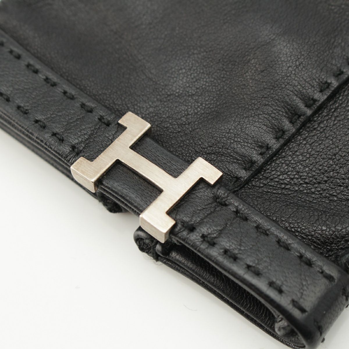 エルメス ラムレザー Hモチーフ 手袋 グローブ ブラック シルバー金具