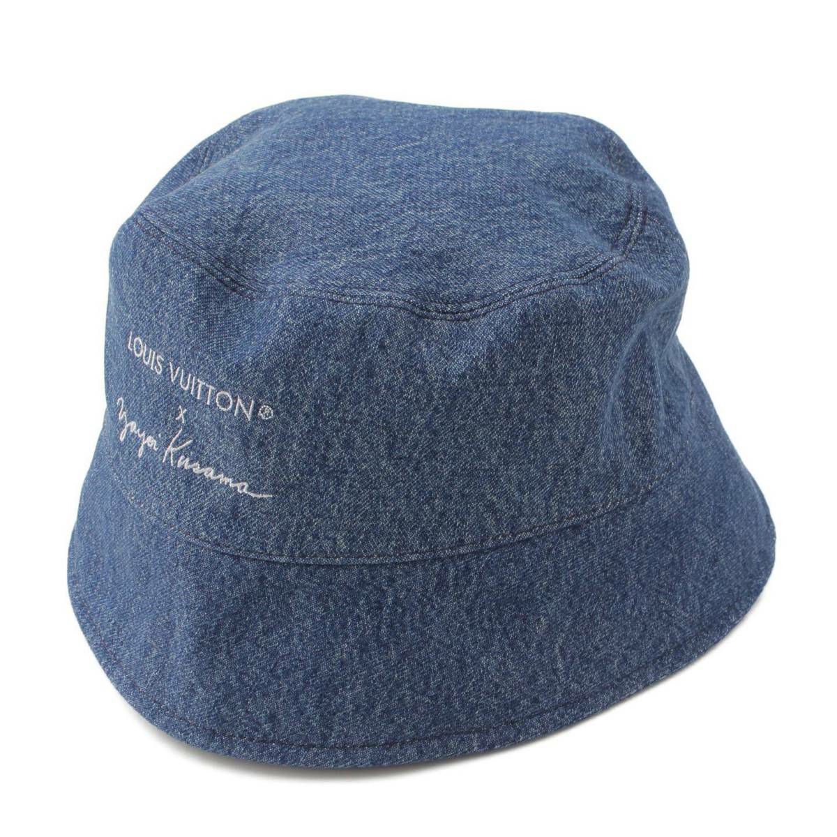 ルイヴィトン 草間彌生 yayoi kusama コットンデニム パンプキンドット リバーシブル バケット ハット 帽子 M7066L ブルー
