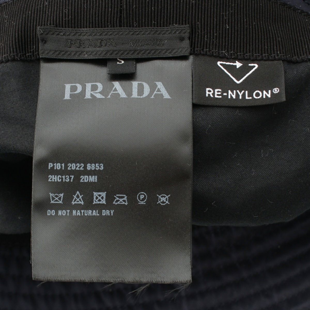 プラダ リナイロン トライアングルロゴ バケット ハット 帽子 2HC137 ネイビー S