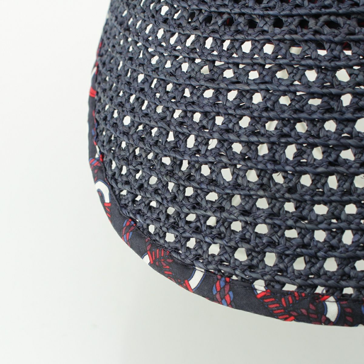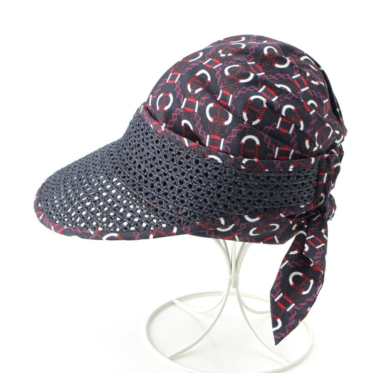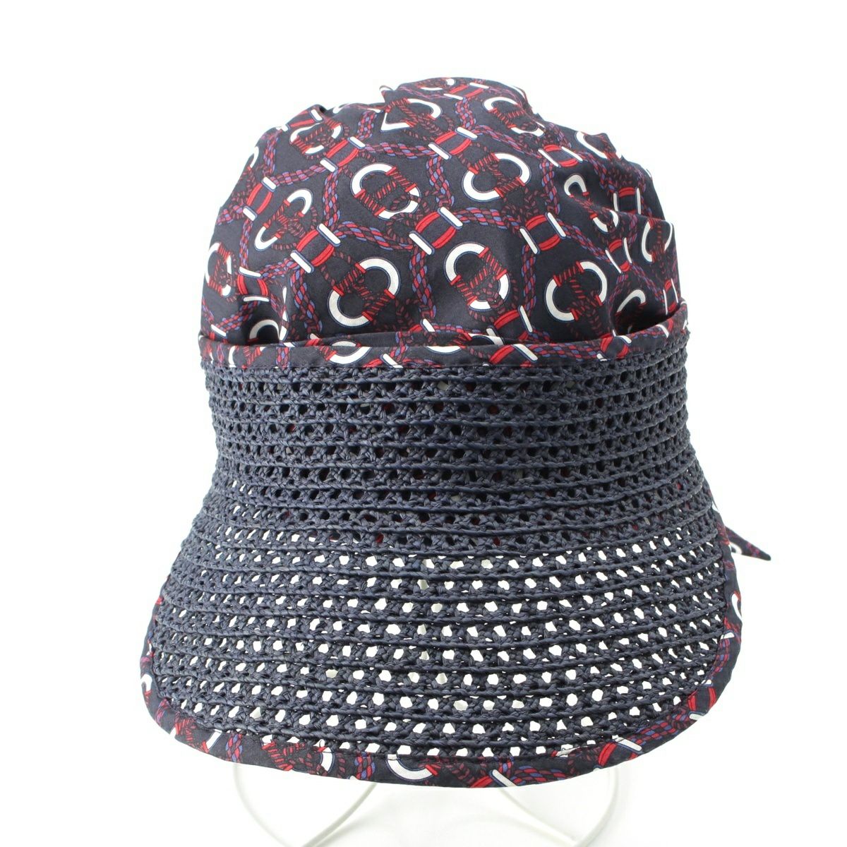 エルメス ラフィア コットン ジェミニ 帽子 キャップ ネイビー