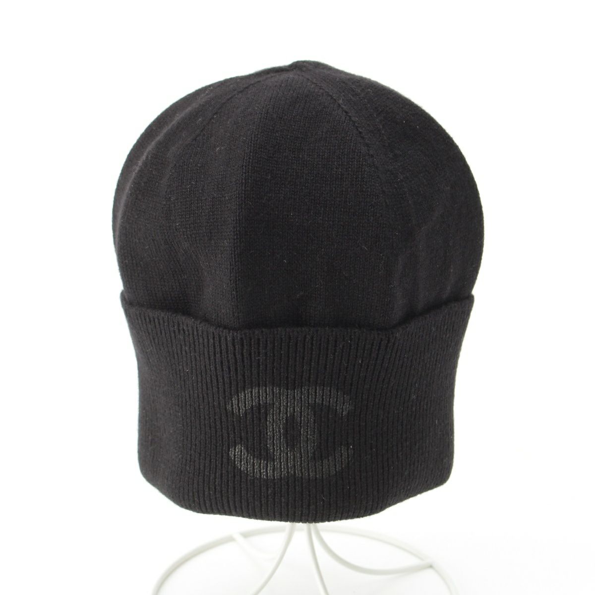 シャネル カシミヤ ココマーク CC ロゴ ニット ビーニー キャップ 帽子 AA9335 ブラック