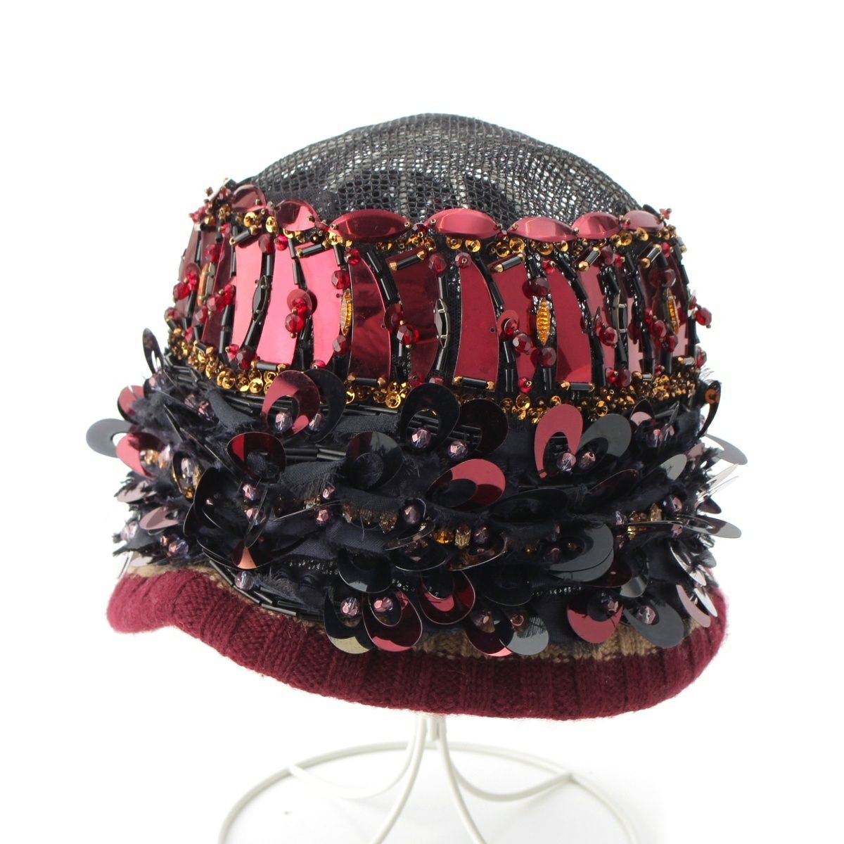 プラダ 2005 S/S 装飾 ビジュー メッシュ スパンコール ビーズ ハット 帽子 ブラック レッド系 マルチカラー