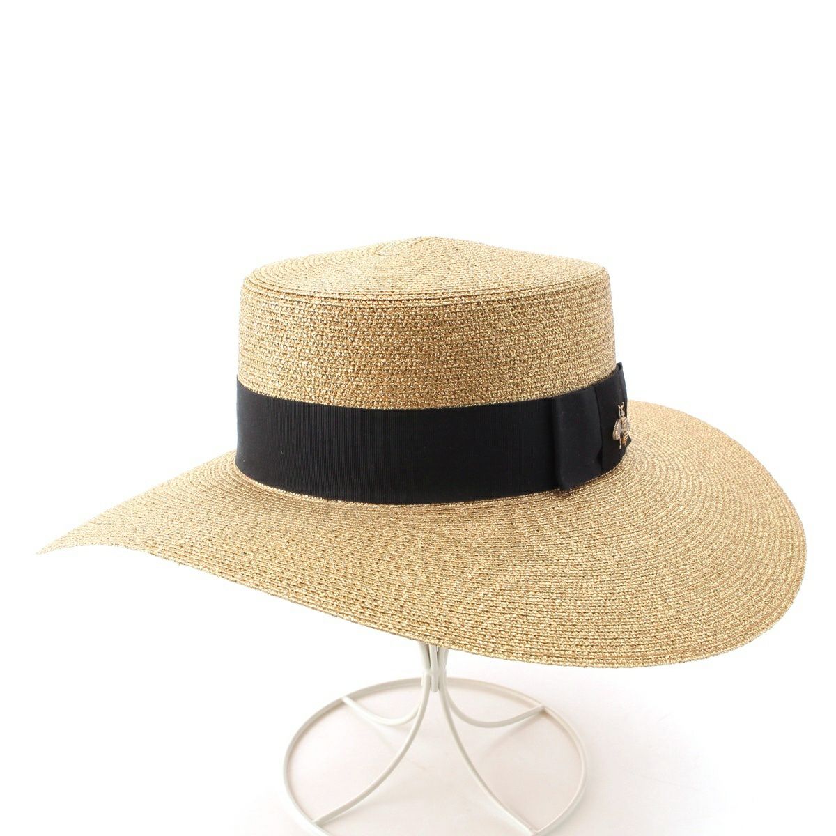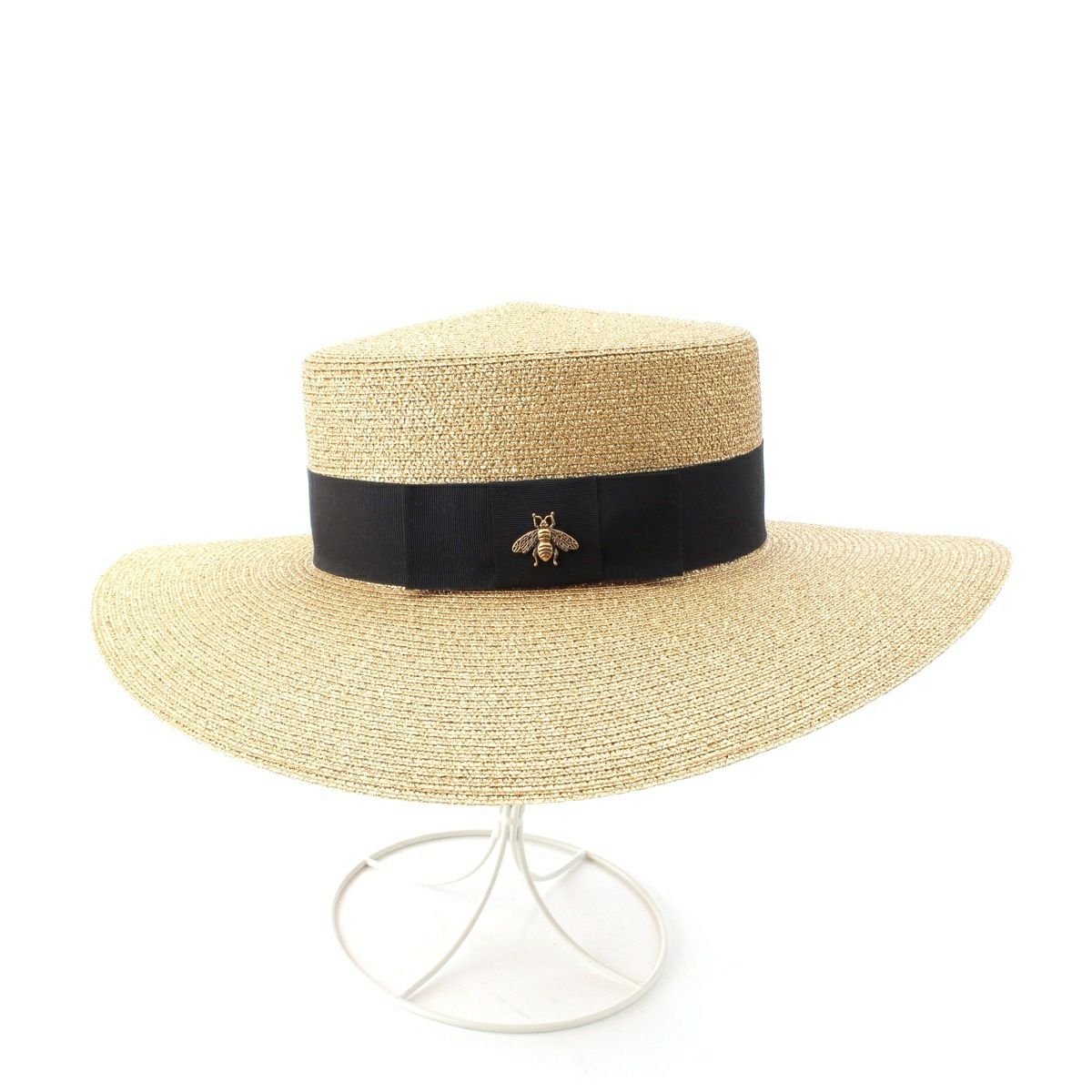 グッチ BEE ビー ファブリック パピエ ストロー ハット 帽子 ゴールド S