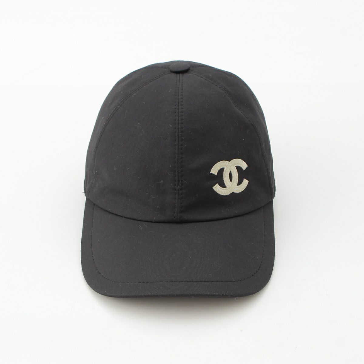 シャネル ナイロン コットン ココマーク キャップ 帽子 ブラック ホワイト