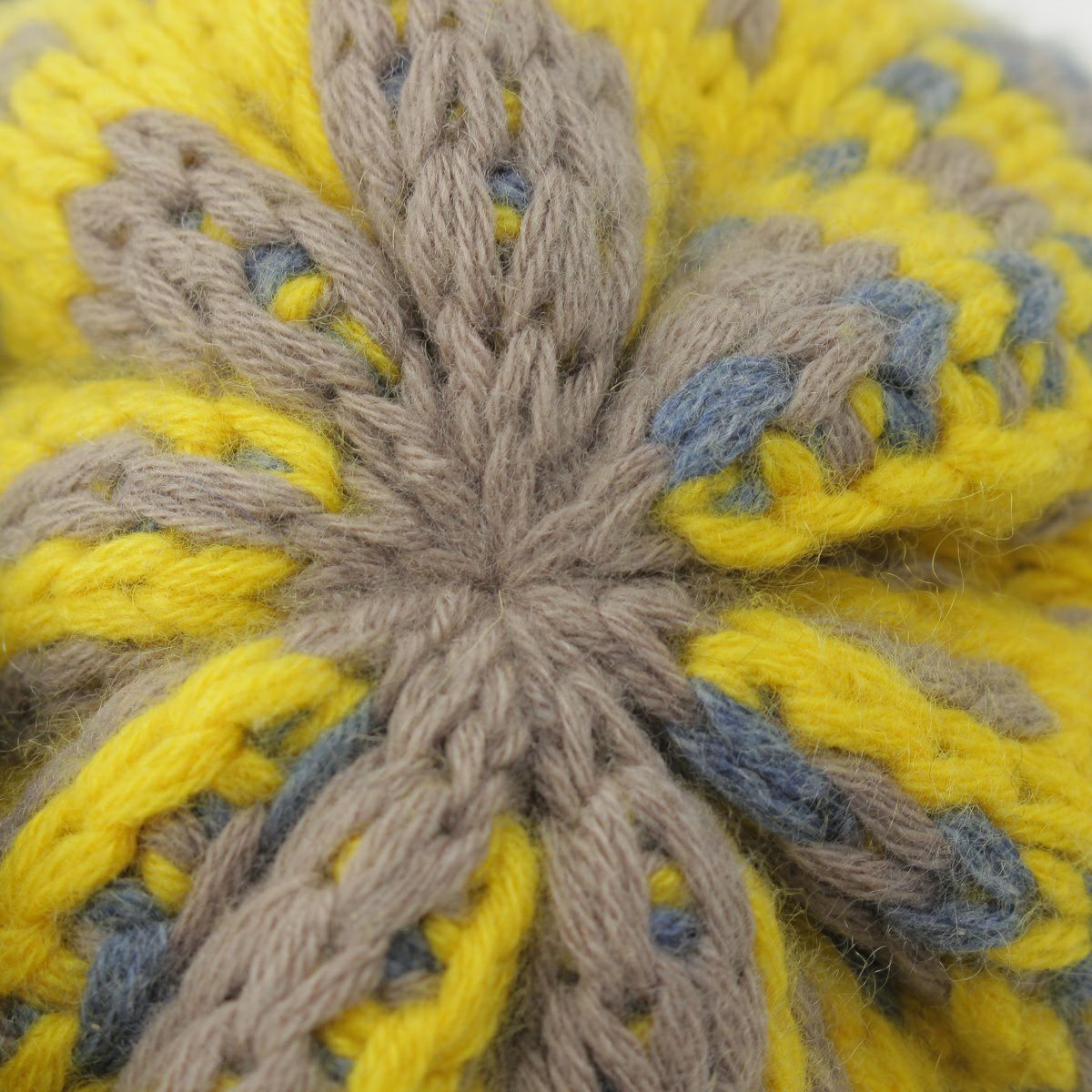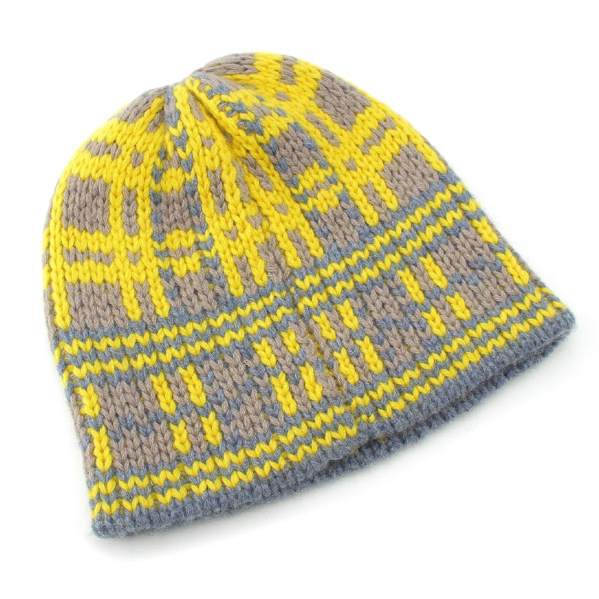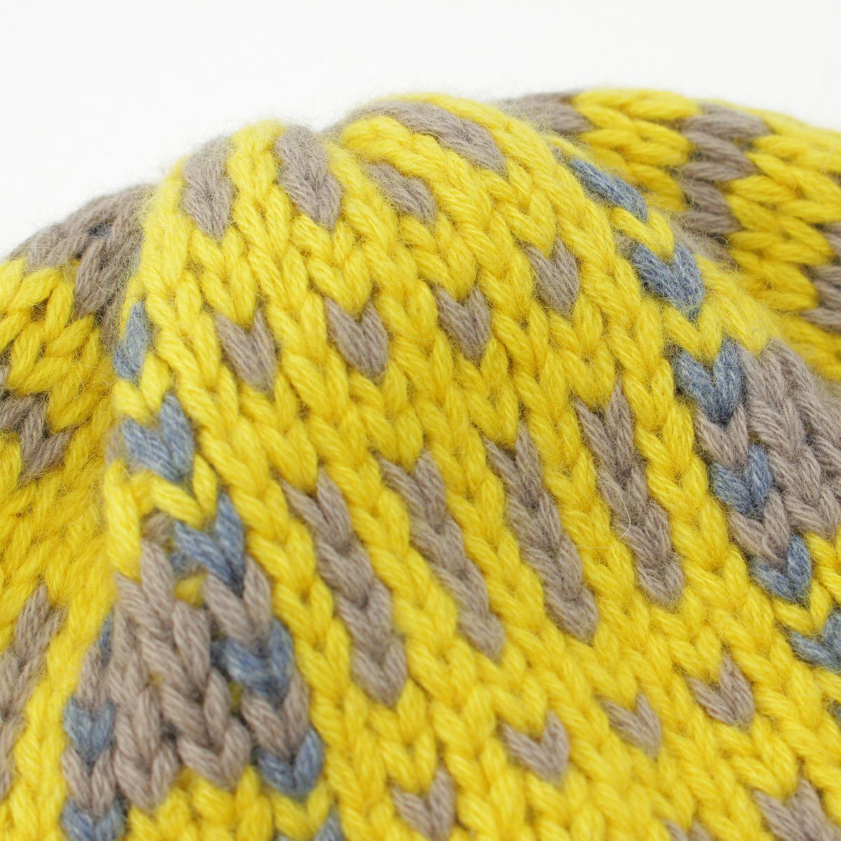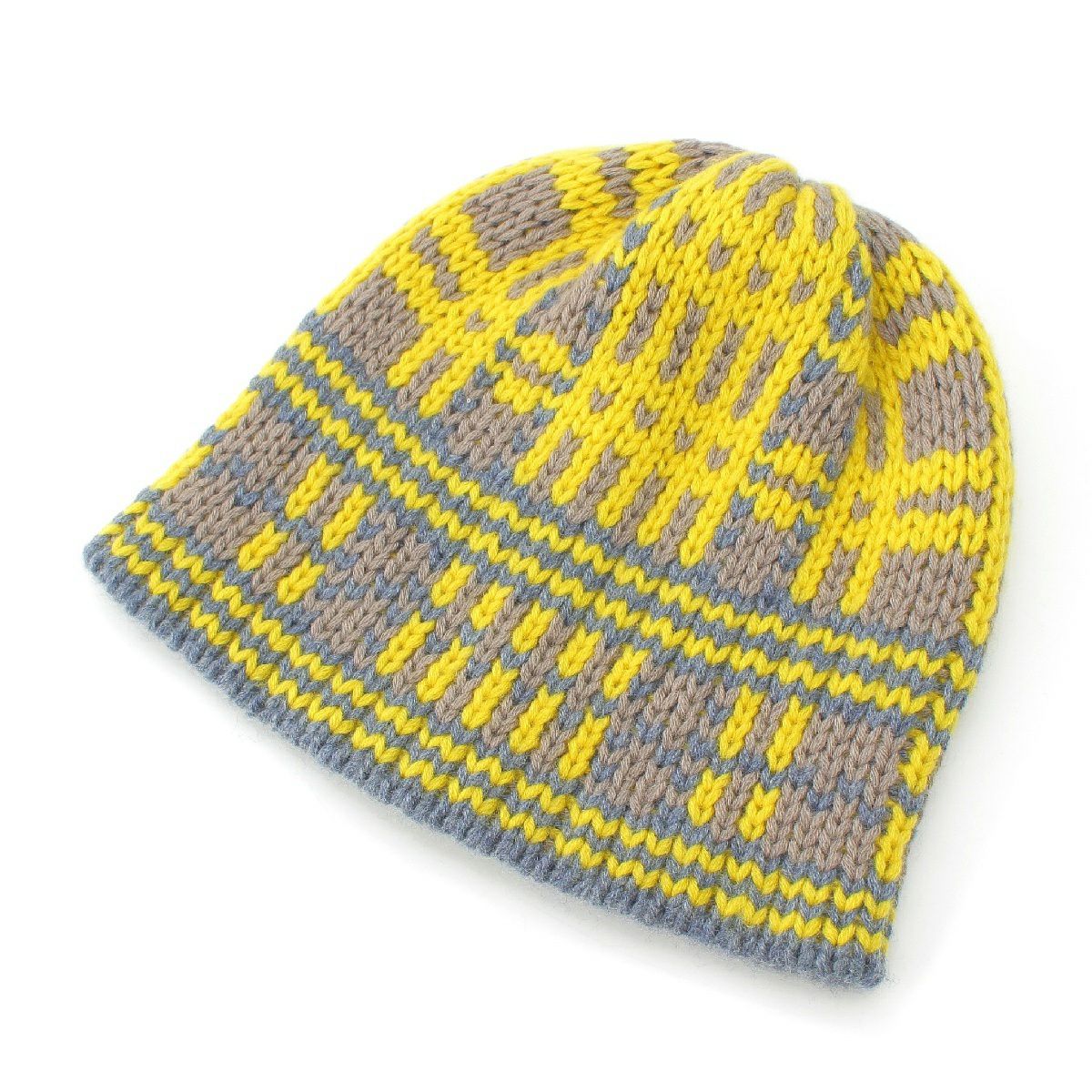 エルメス カシミヤ H総柄 ニットキャップ ビーニー 帽子 イエロー グレー マルチカラー S