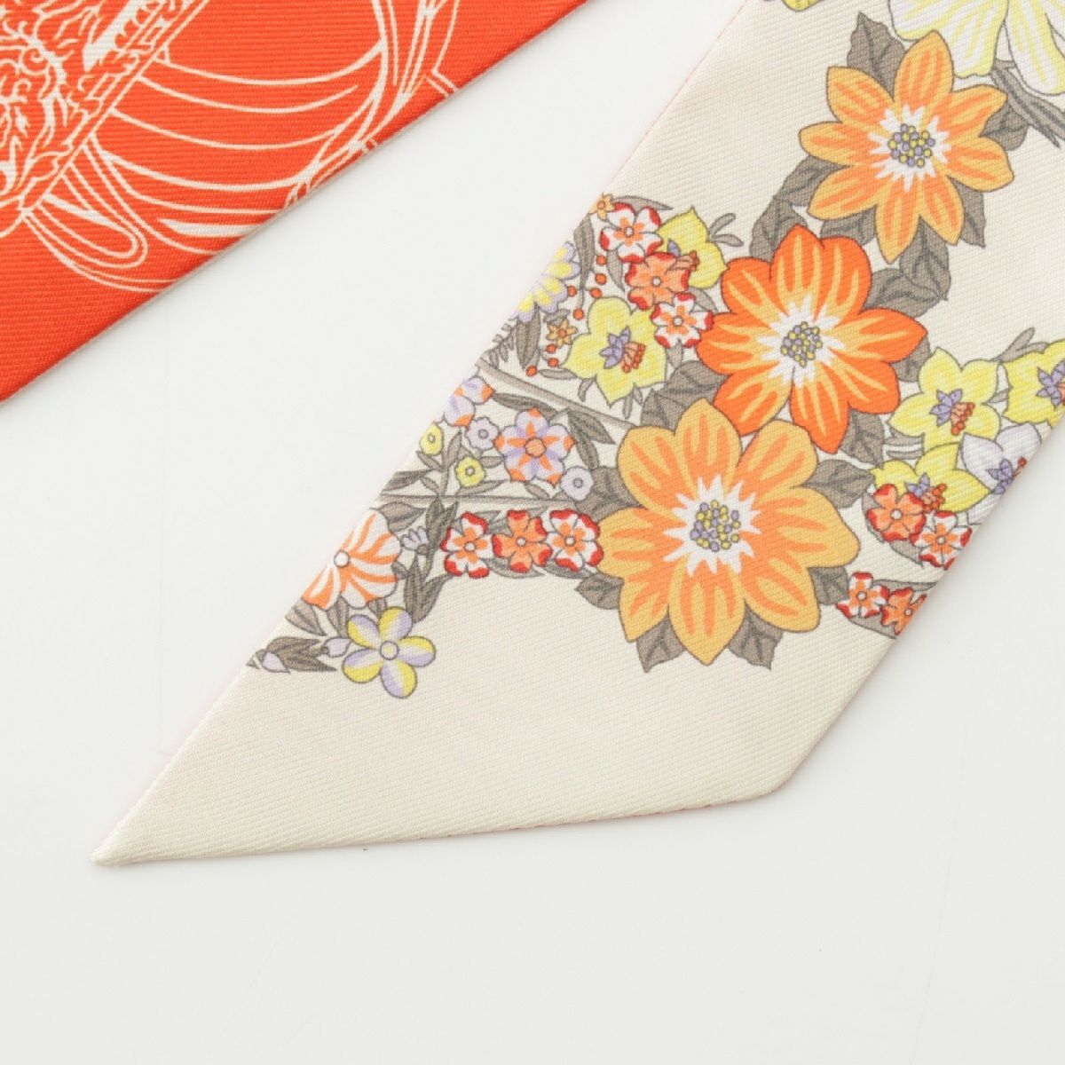 エルメス ツイリー シルク BRIDES DE GALA EN FLEURS ブリッドドゥガラ アンフルール スカーフ ストール オレンジ ベージュ