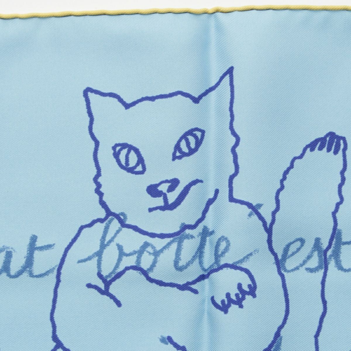エルメス ガヴロッシュ カレ45 シルク Le Chat Botte 長靴をはいた猫 スカーフ ハンカチ ミニ プチ ライトブルー
