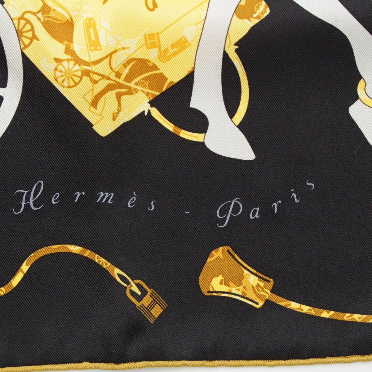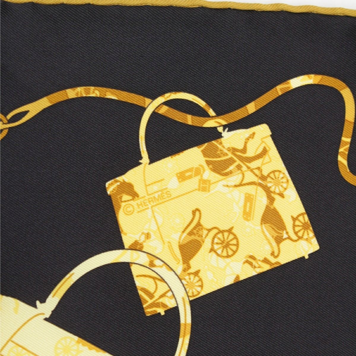 エルメス カレ70 シルク Kelly en Caleche スカーフ ブラック