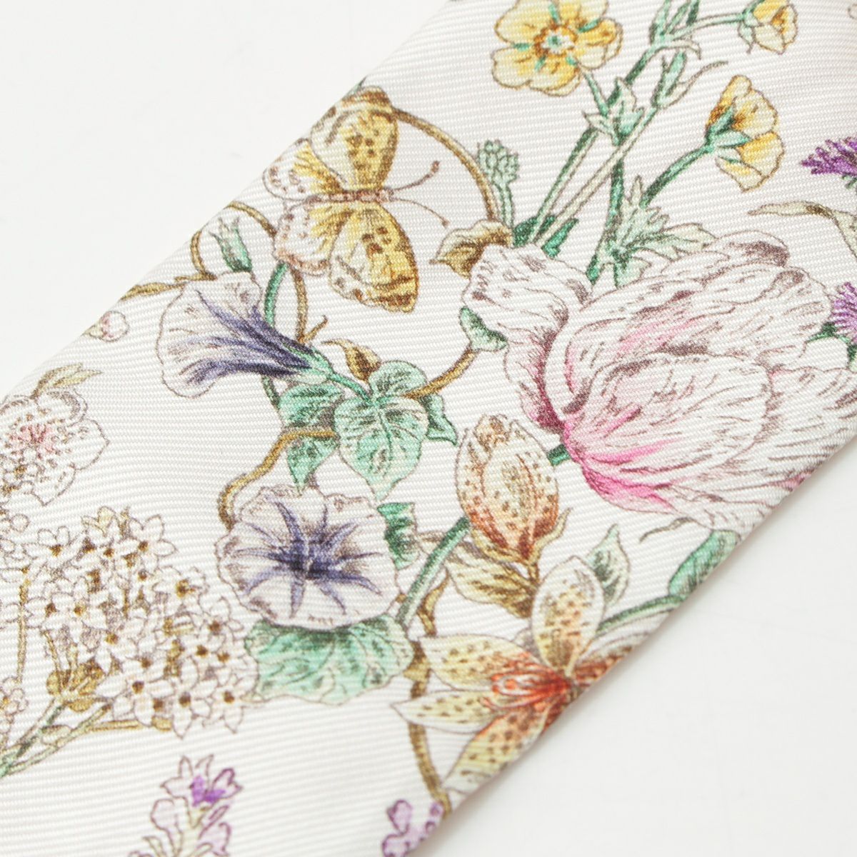 ディオール シルク ミッツァ フローラルプリント スカーフ ホワイト×ピンク
