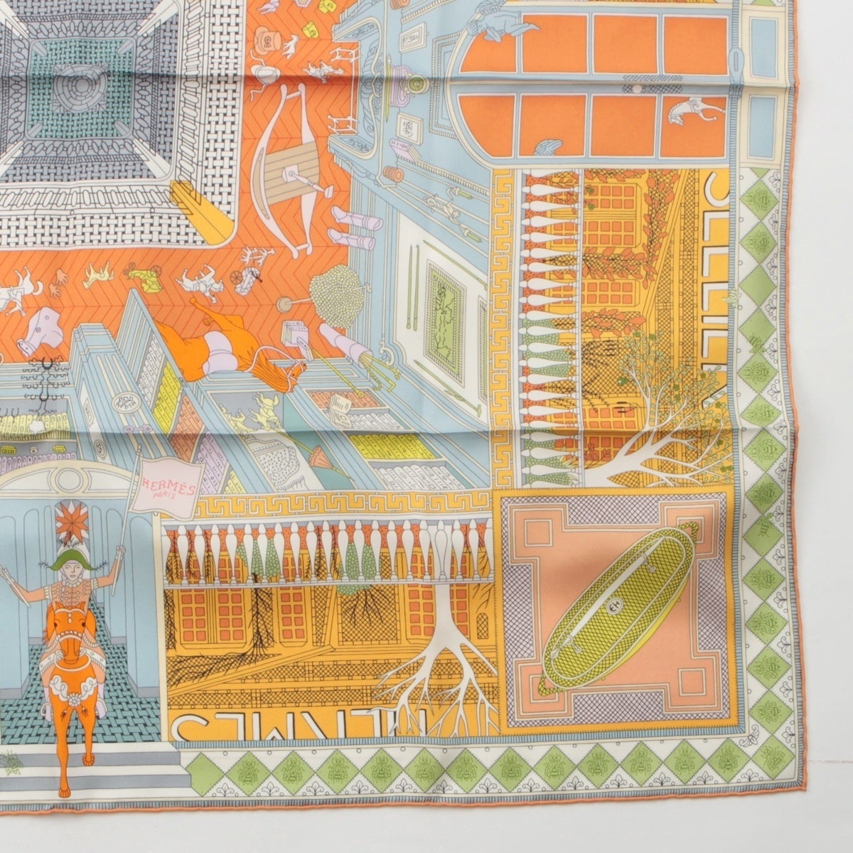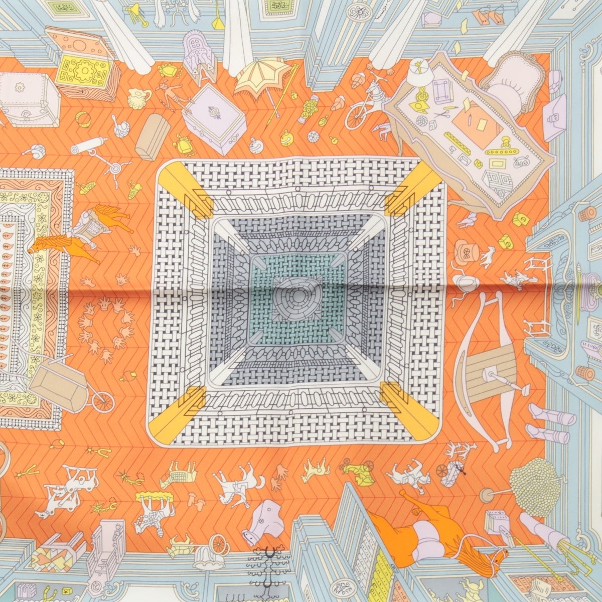 エルメス カレ90 シルク Objets de Curiosite オブジェ・ドゥ・キュリオジテ スカーフ オレンジ