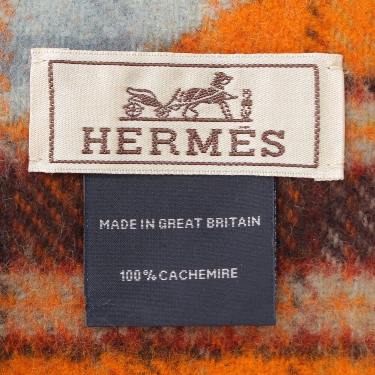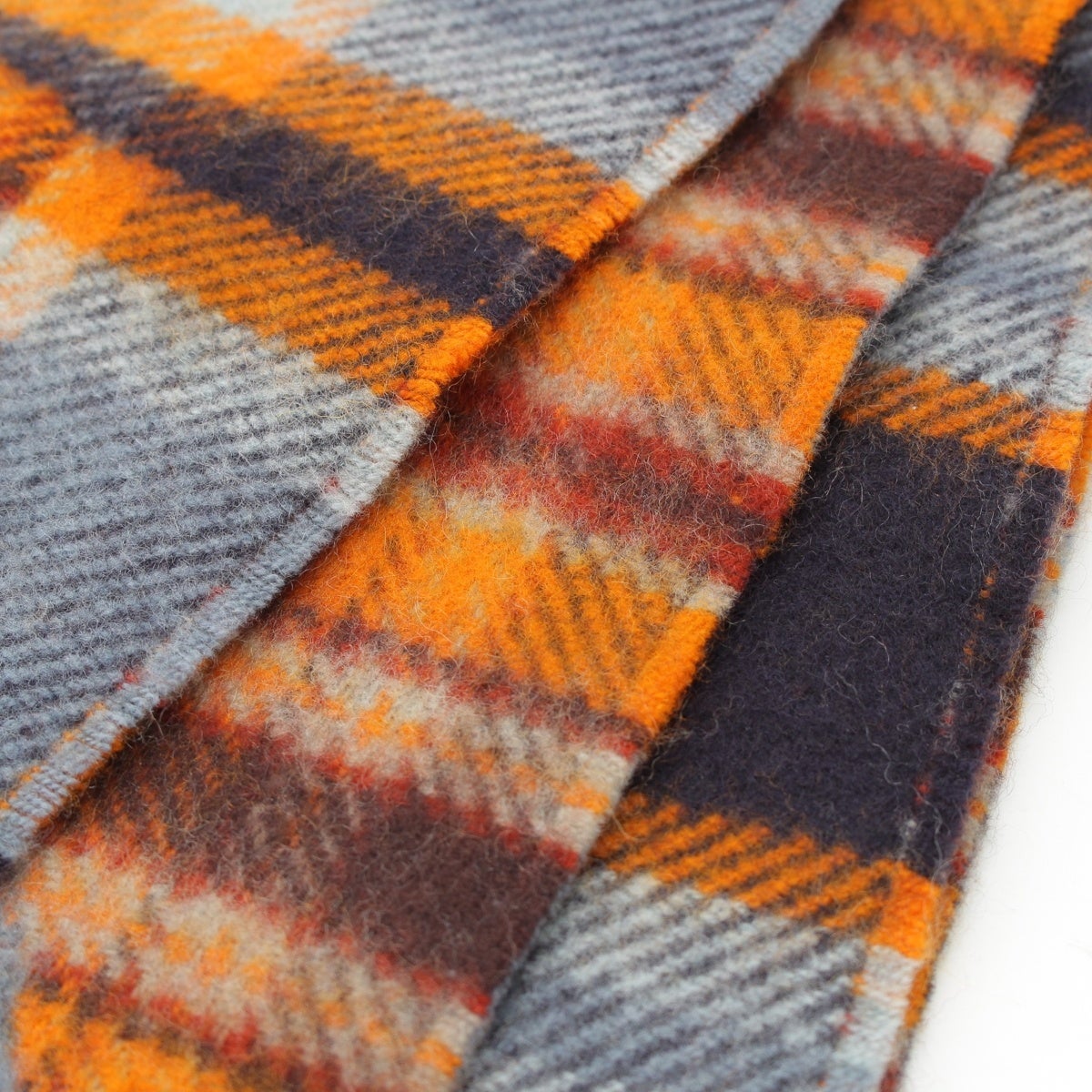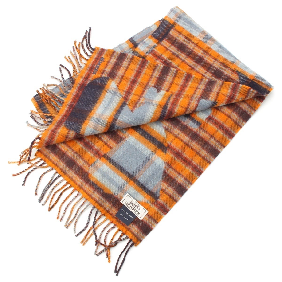エルメス カシミヤ エシャルプ チェック柄 フリンジ マフラー オレンジ