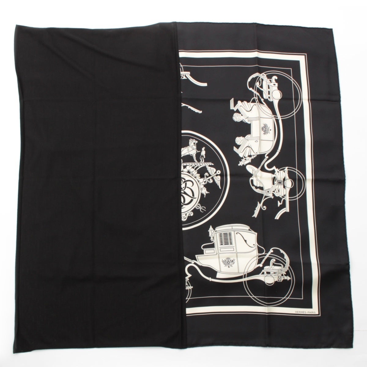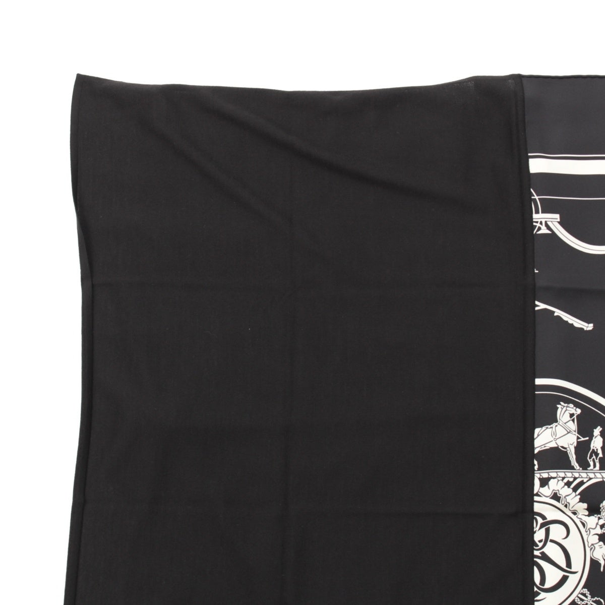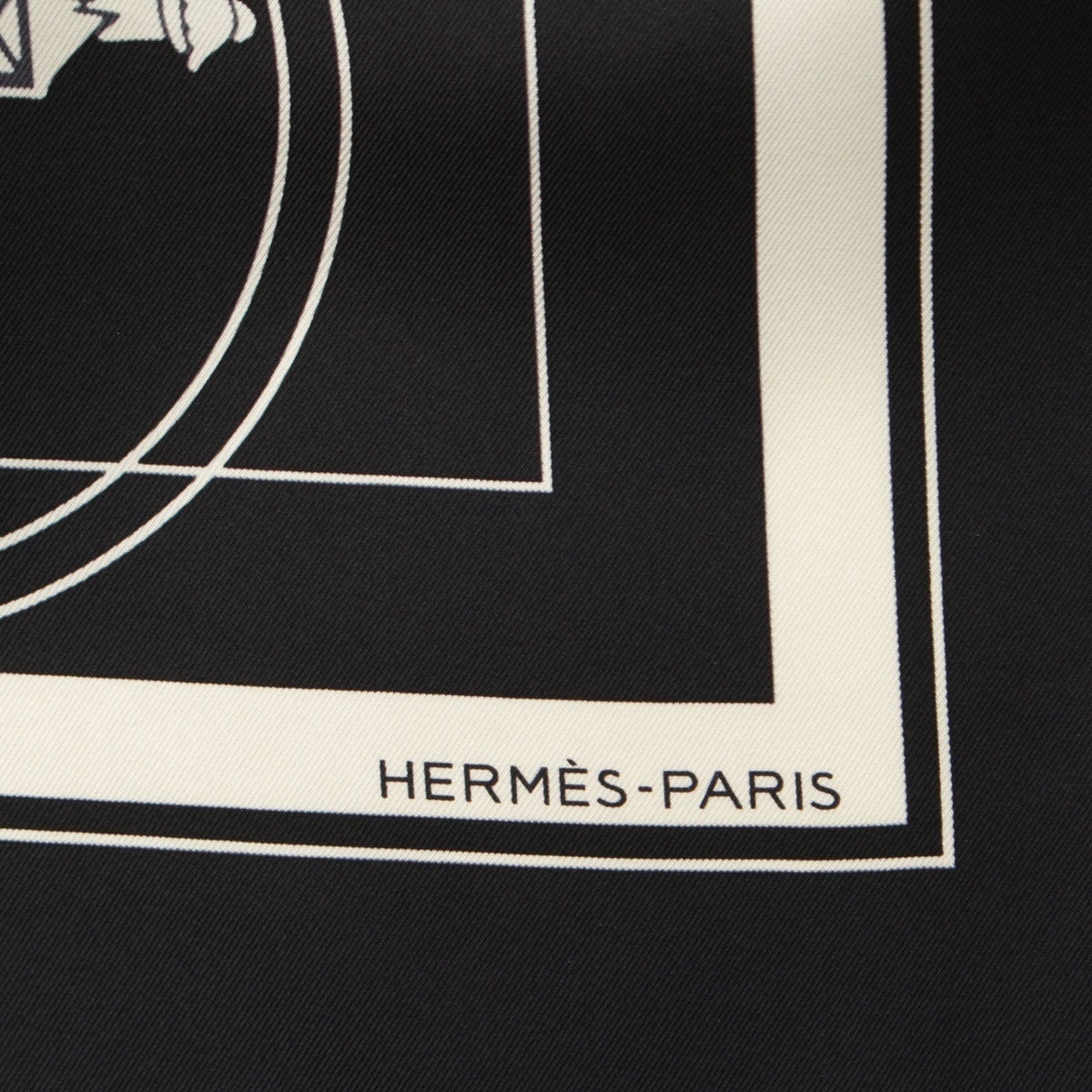 エルメス カレH ハイブリッド 90 シルク ウール EX-LIBRIS エクスリブリス スカーフ ブラック ホワイト