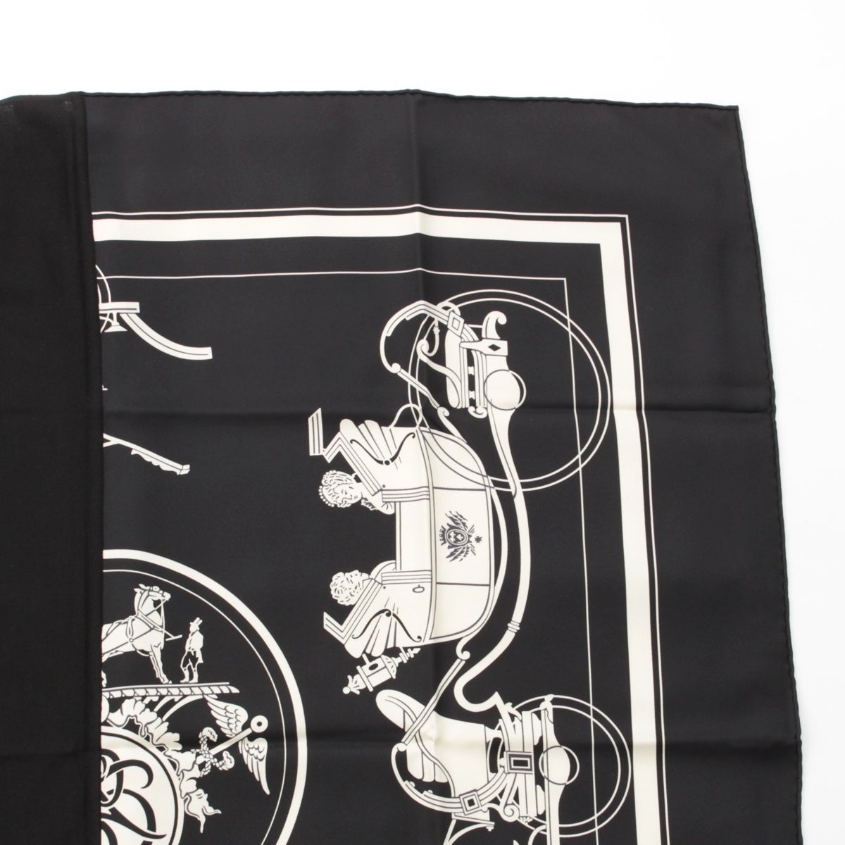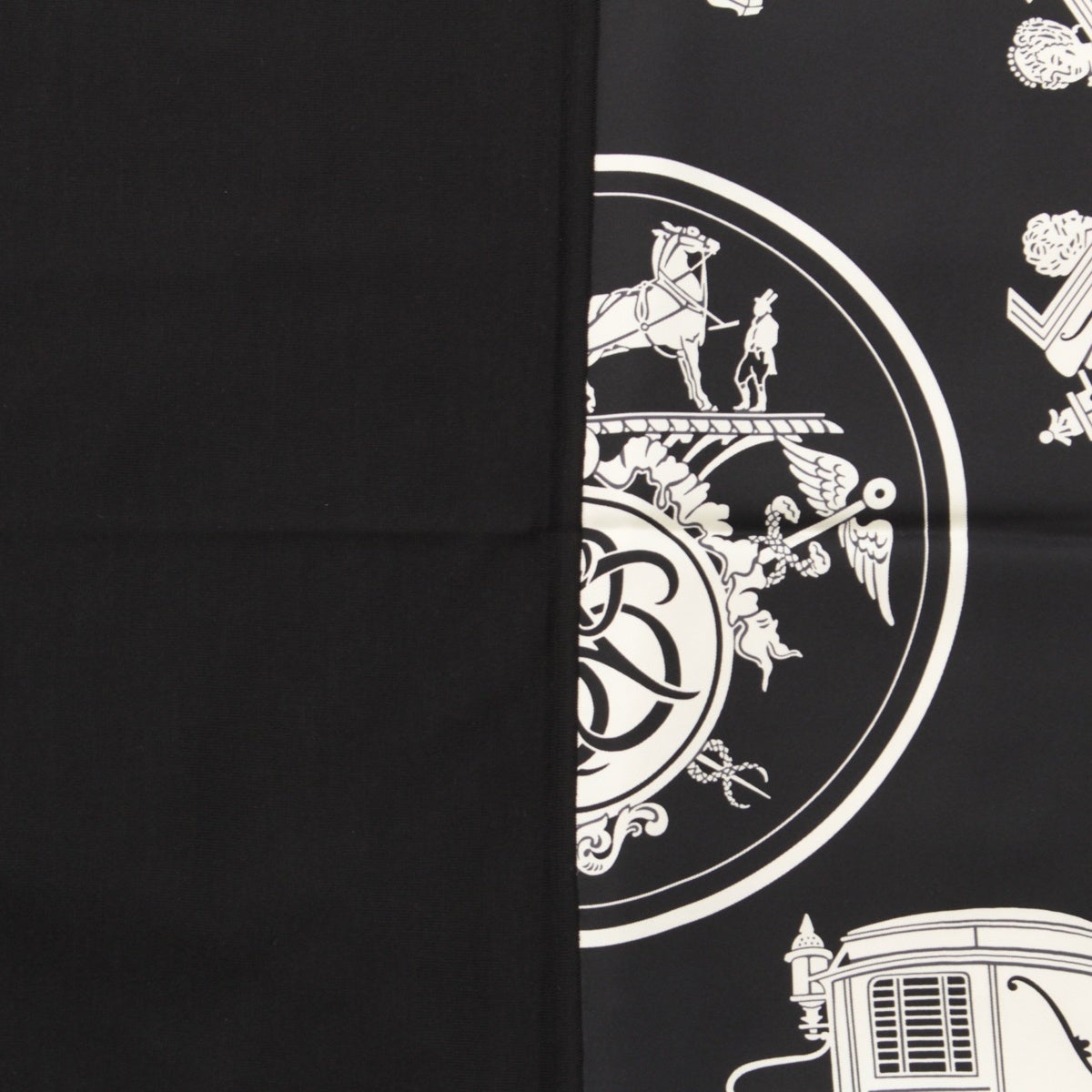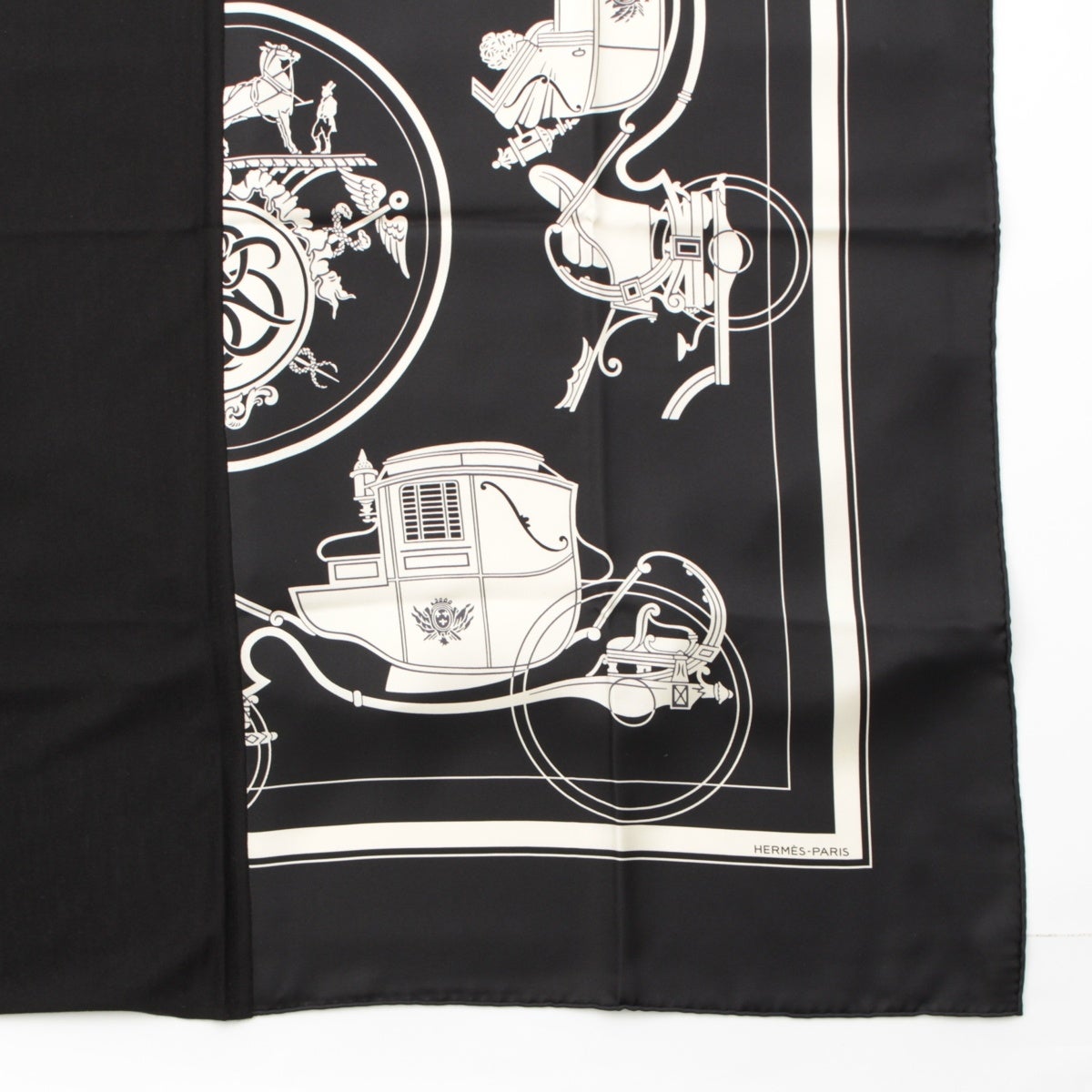 エルメス カレH ハイブリッド 90 シルク ウール EX-LIBRIS エクスリブリス スカーフ ブラック ホワイト