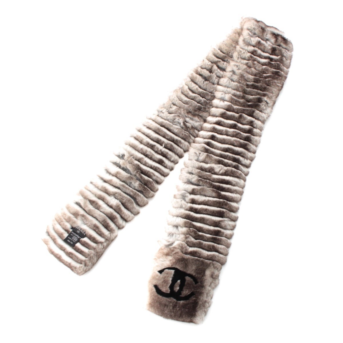 シャネル ラビットファー オリラグ ココマーク マフラー グレー