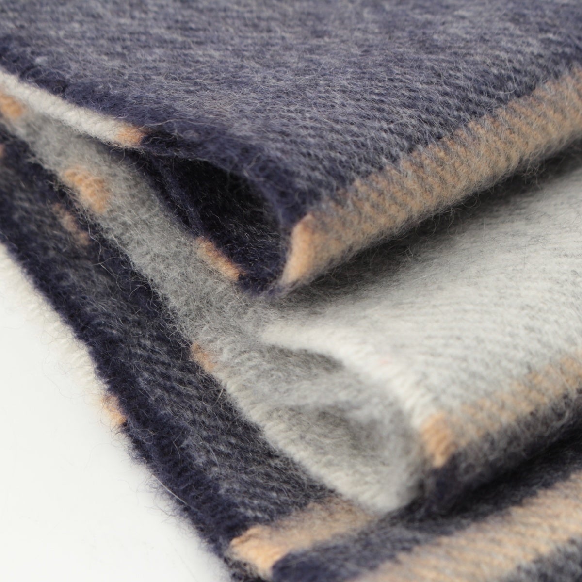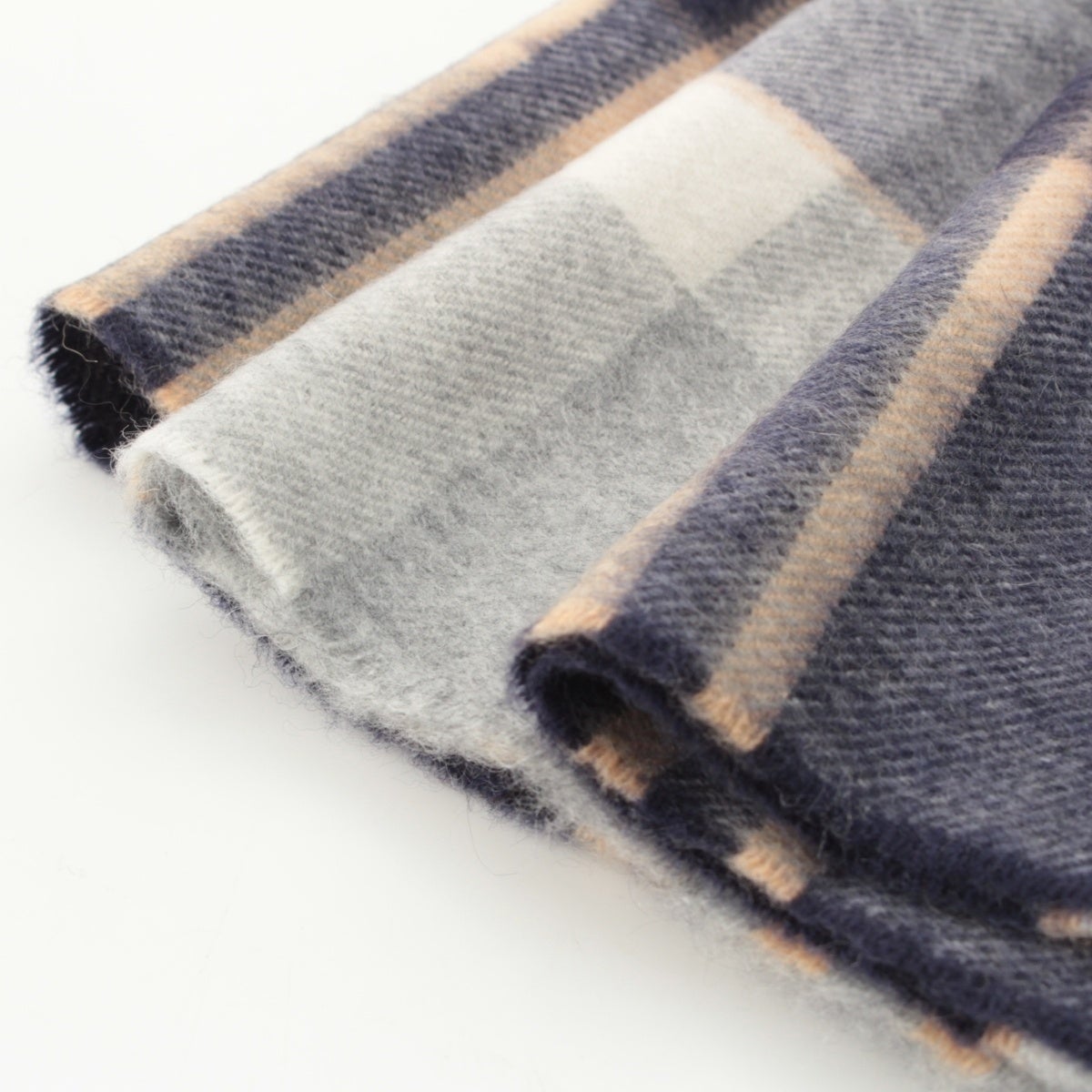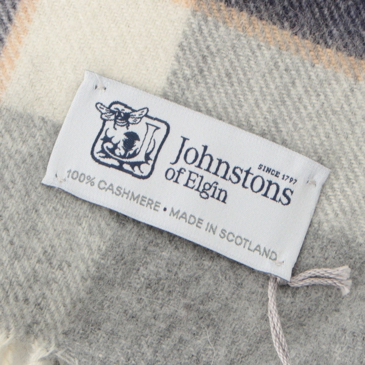 ジョンストンズオブエルガン カシミヤ チェック マフラー ブルー