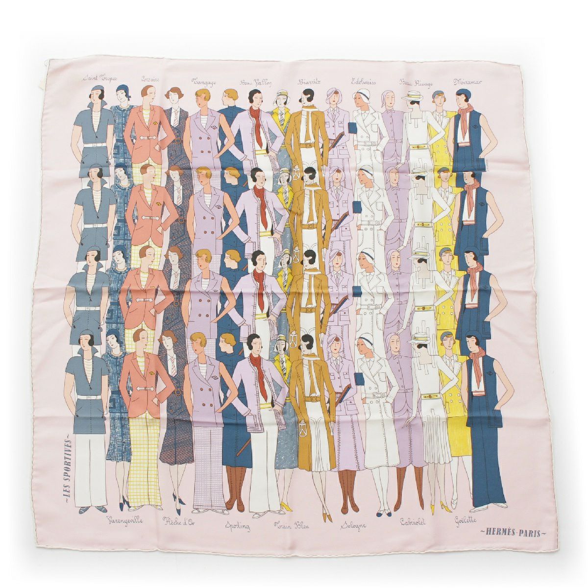 エルメス カレ70 シルク LES SPORTI VES スポーツルック スカーフ ピンク系マルチカラー