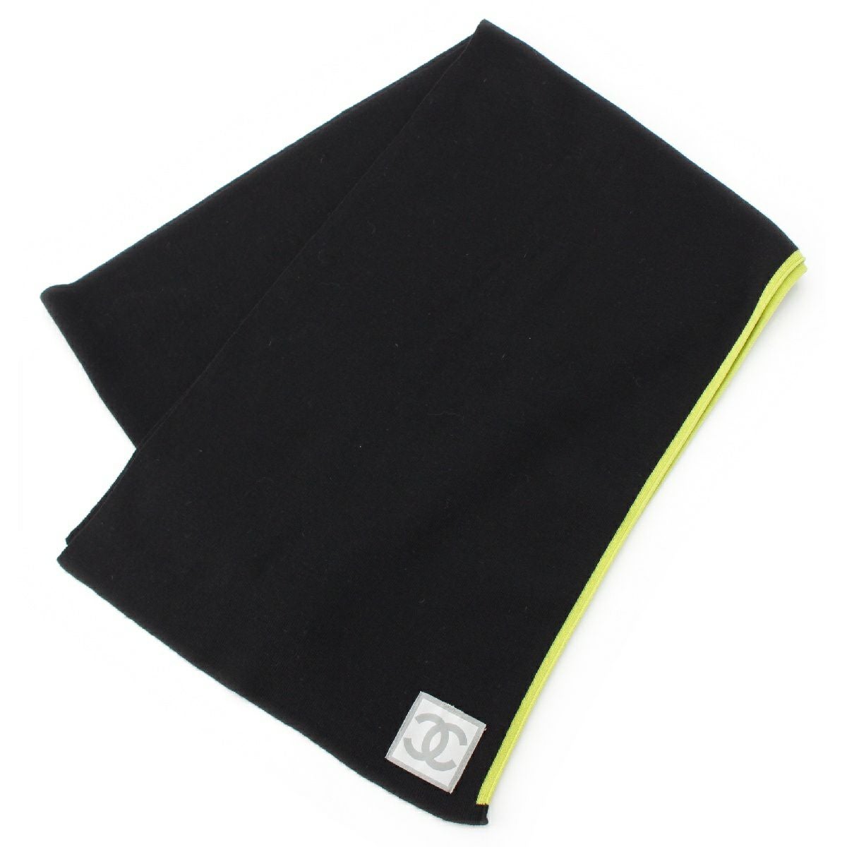 シャネル スポーツライン カシミヤ混 ココマーク レザーパッチ マフラー ブラック