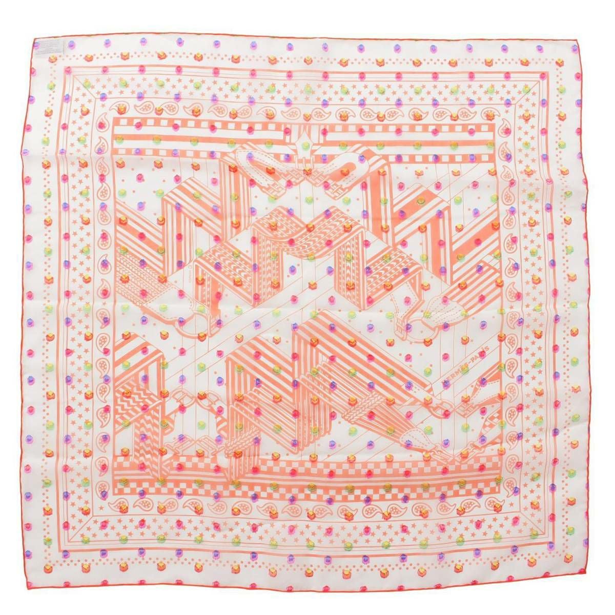 エルメス 23SS カレ60 ジグザグのサングル レインボードット スカーフ H033867S オレンジ