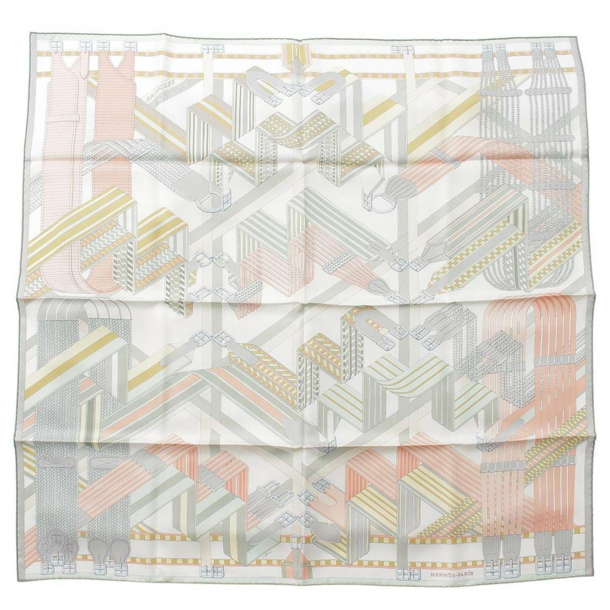 エルメス カレ90 Sangles en Zigzag ジグザグのサングル シルクスカーフ ピンク×グレー