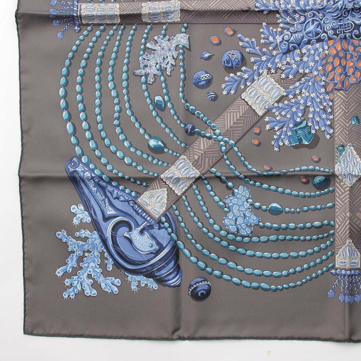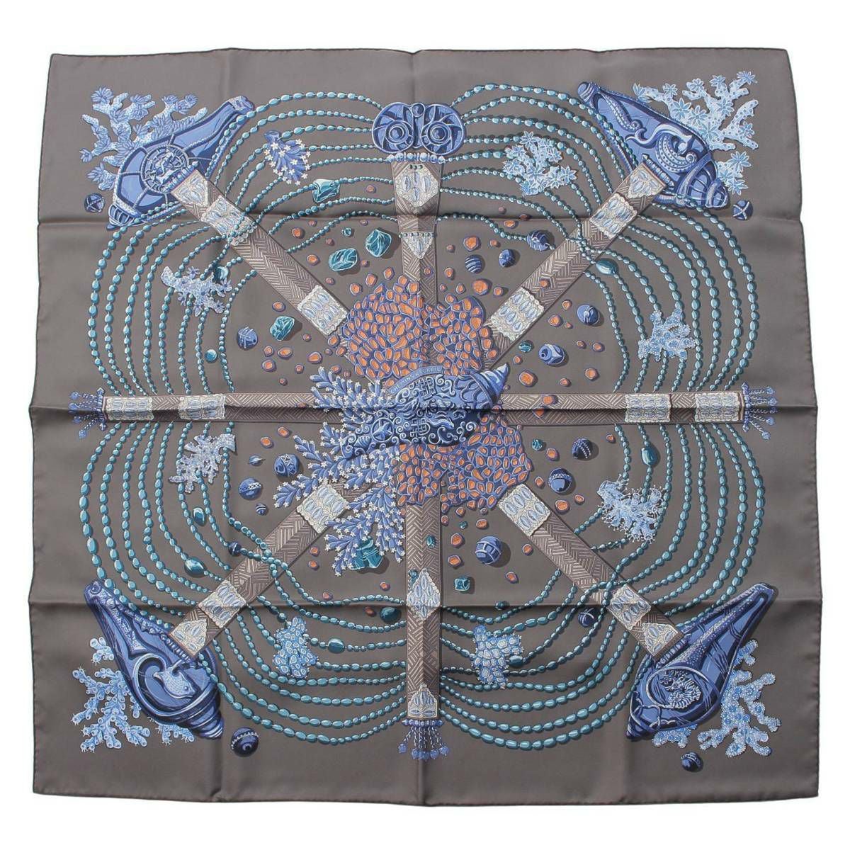 エルメス カレ90 CHEMINS DE CORAIL 珊瑚の小道 シルクスカーフ ブルー×グレー