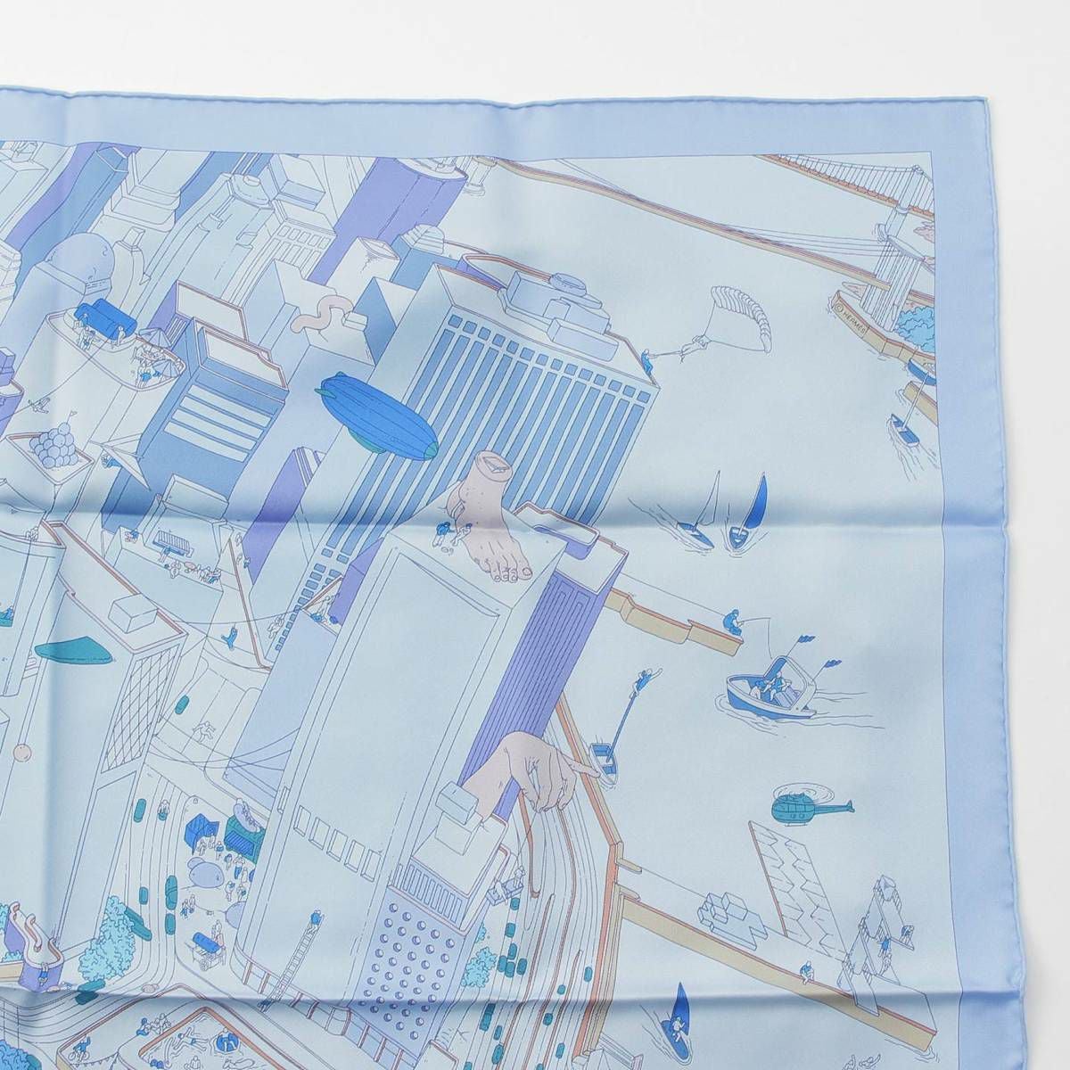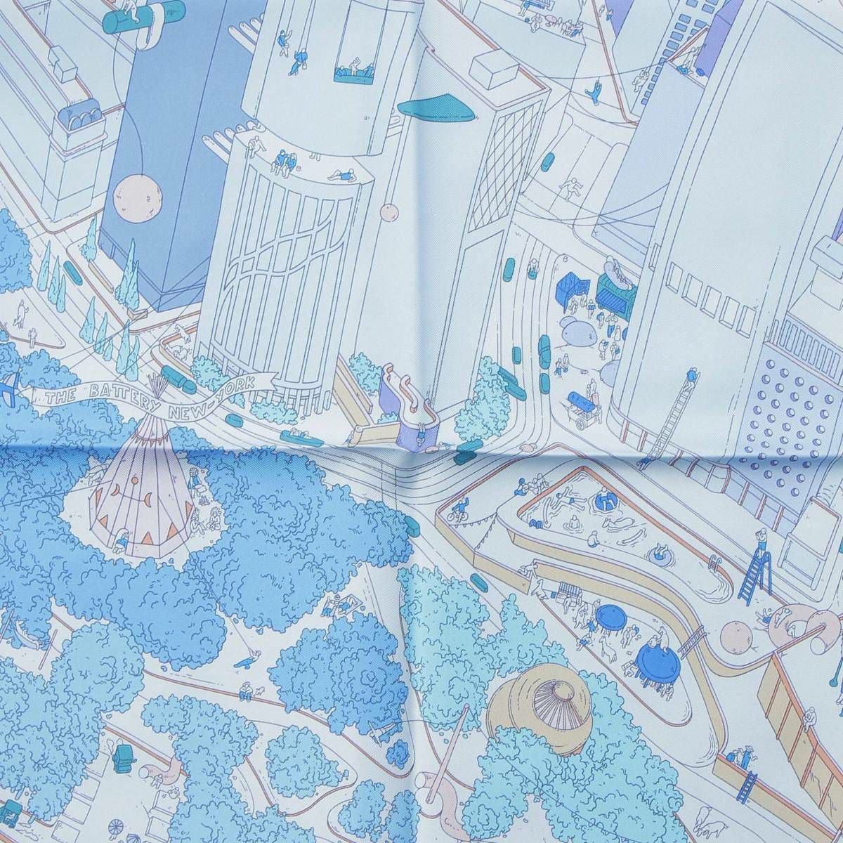 エルメス カレ90 THE BATTERY NEW-YORK バッテリー ニューヨーク シルクスカーフ ブルー
