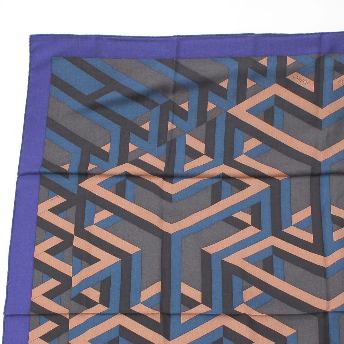 エルメス カレジェアン 140 カシミヤ シルク ストール 大判スカーフ CARRE CUBE 幾何学 ブルー
