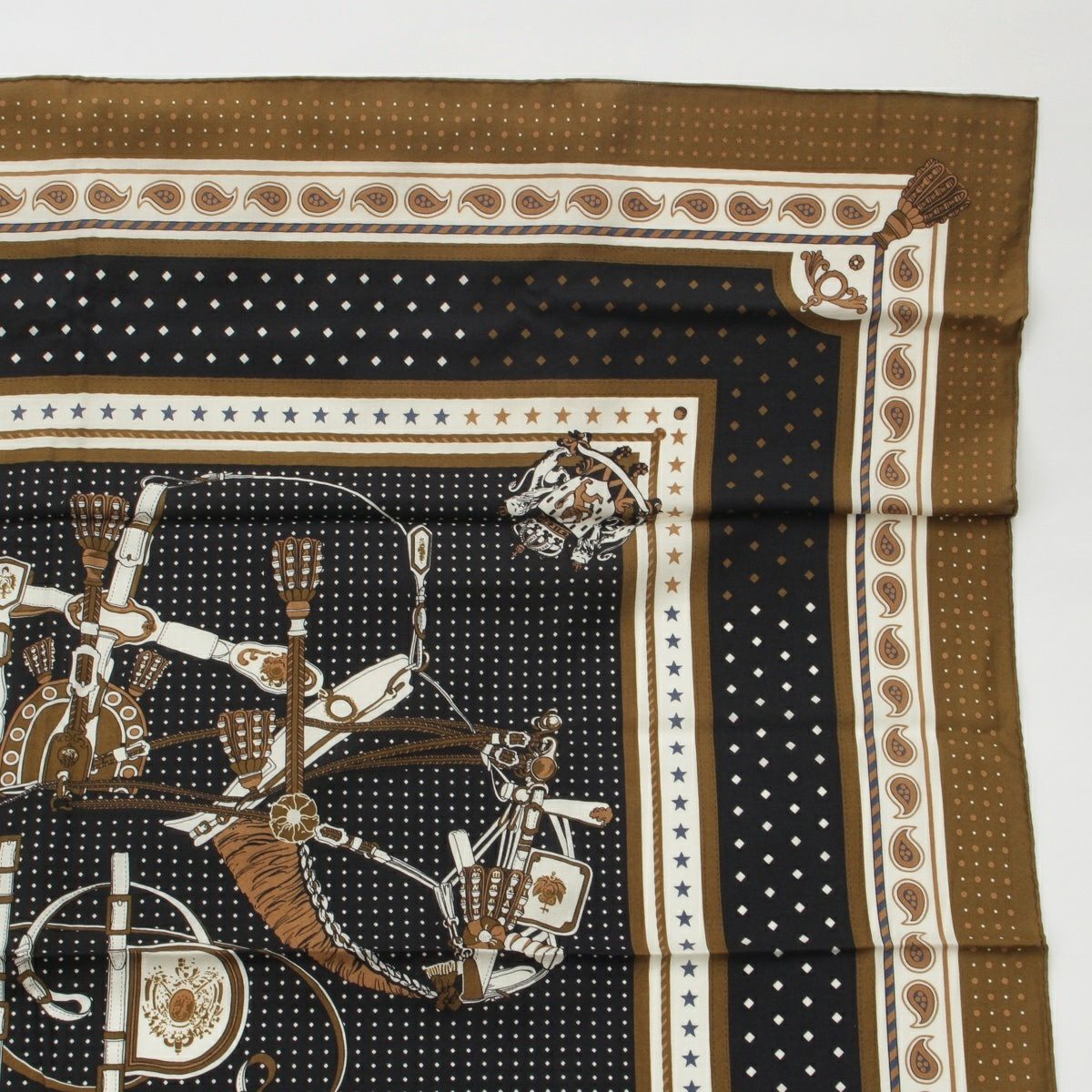 エルメス カシミヤ×シルク カシシル カレジェアン Harnais de Cour Bandana ストール ノワゼット/グリペール/グリスパール