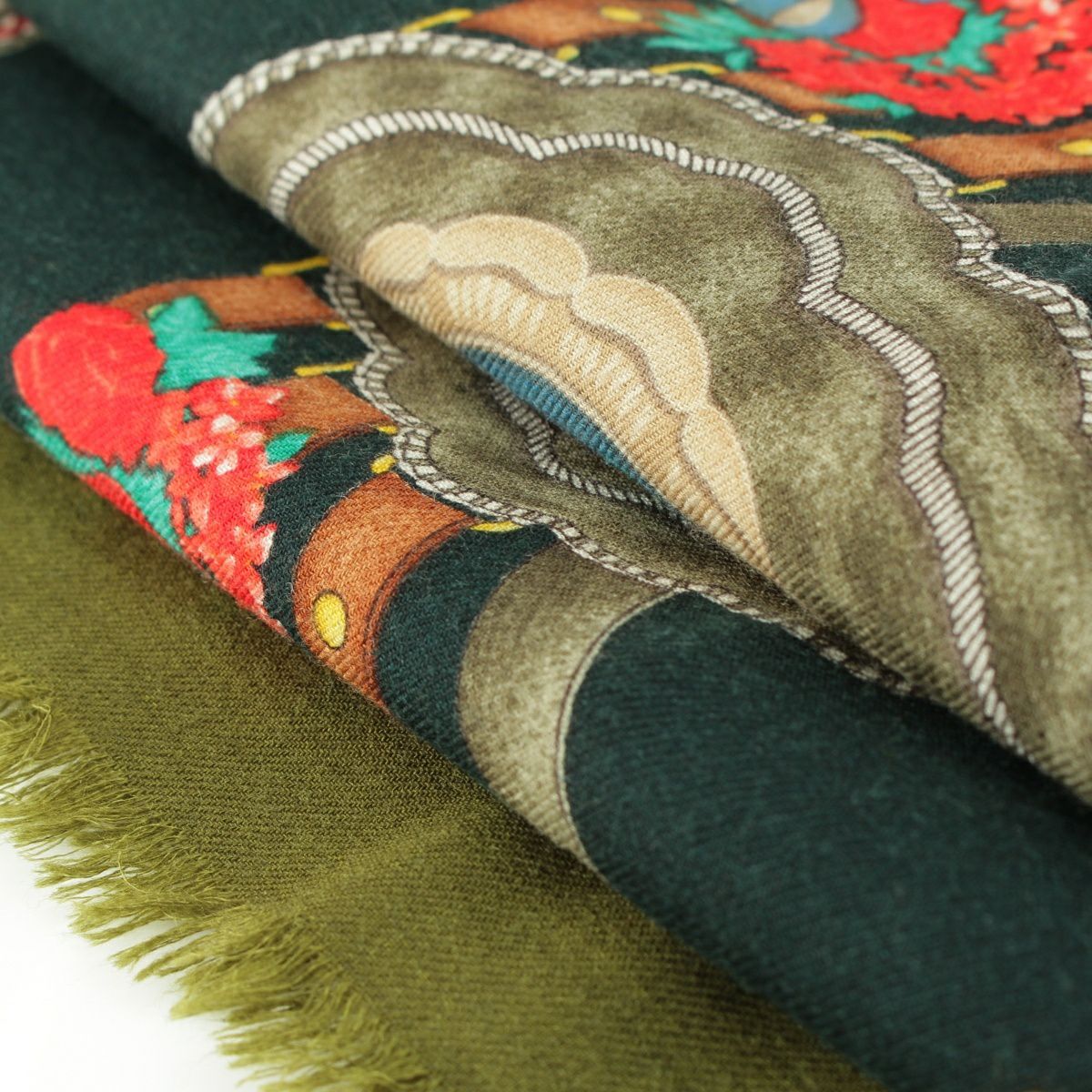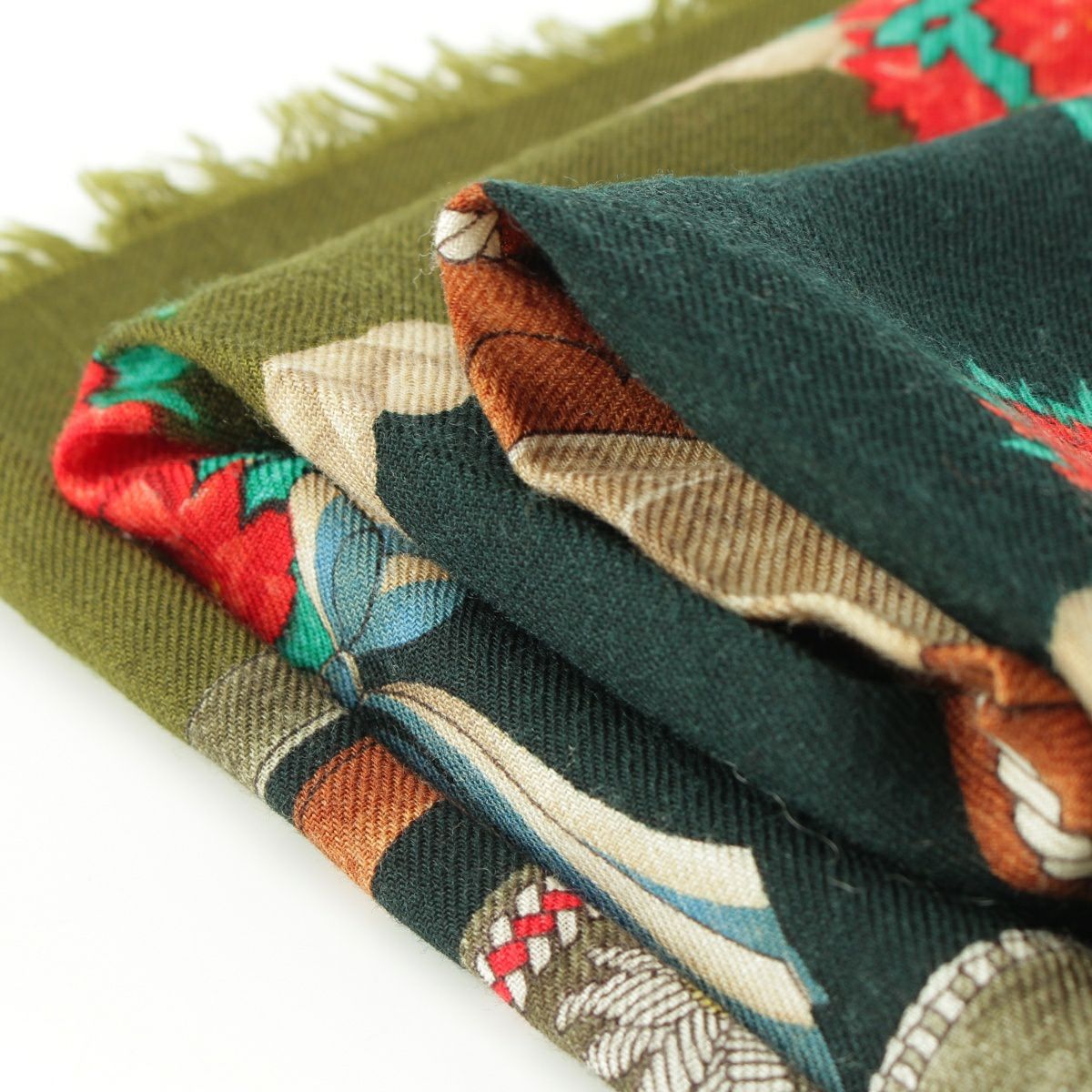グッチ シルク ウール 大判 プリント ショール ストール マルチカラー