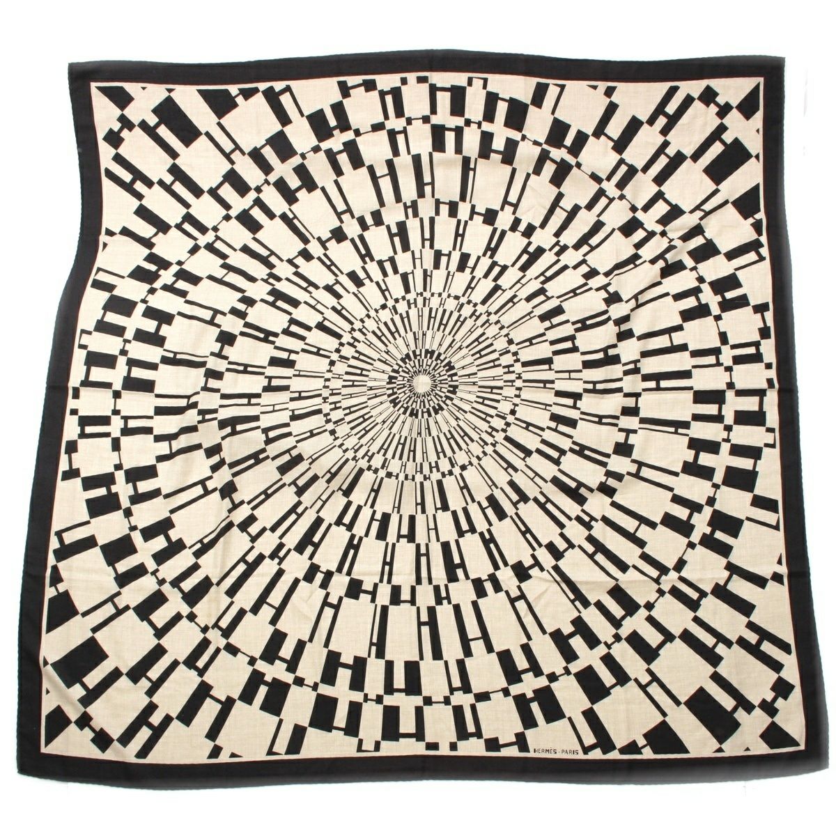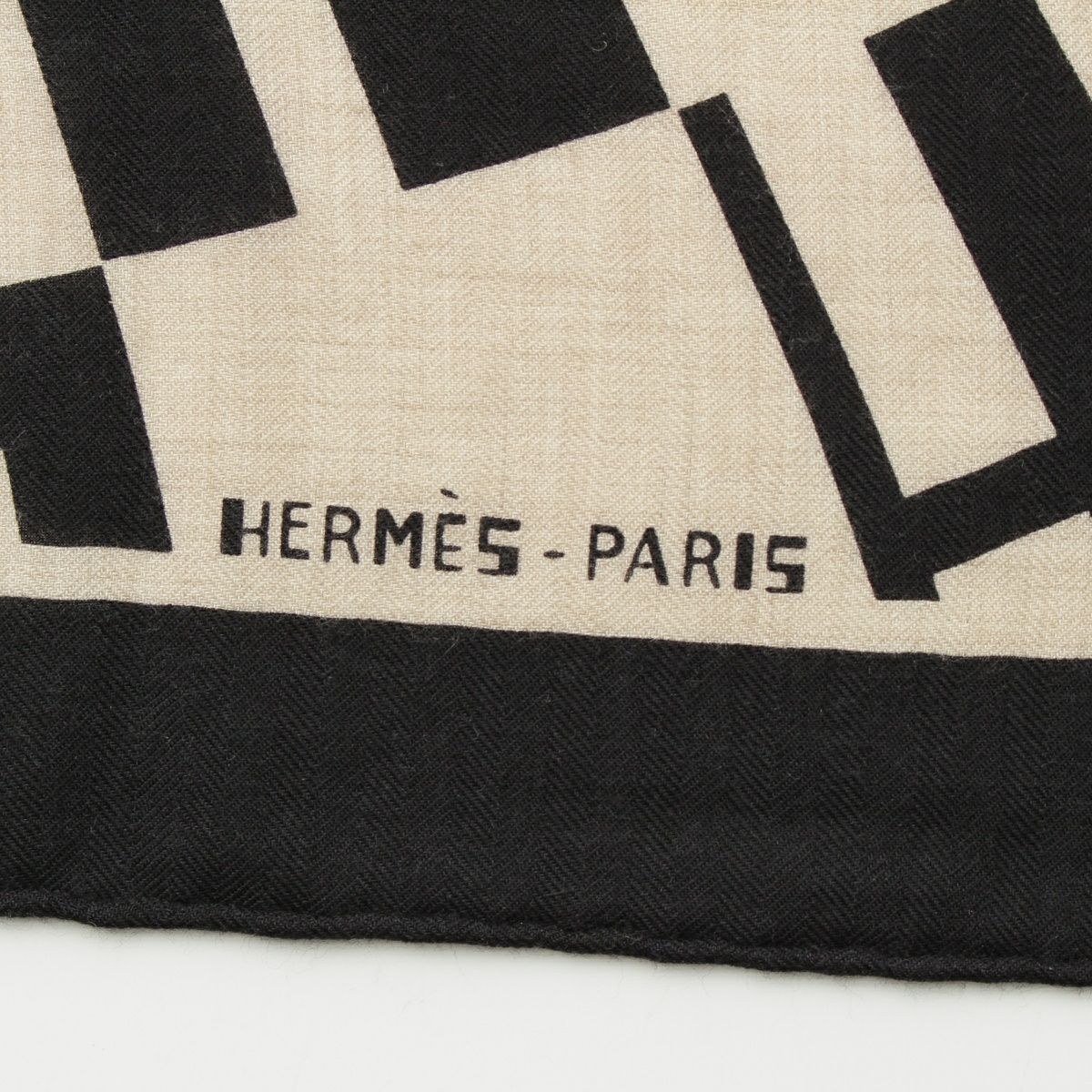 エルメス カレジェアン 140 カシミヤ×シルク OPアッシュ H ストール ショール スカーフ ブラック アイボリー