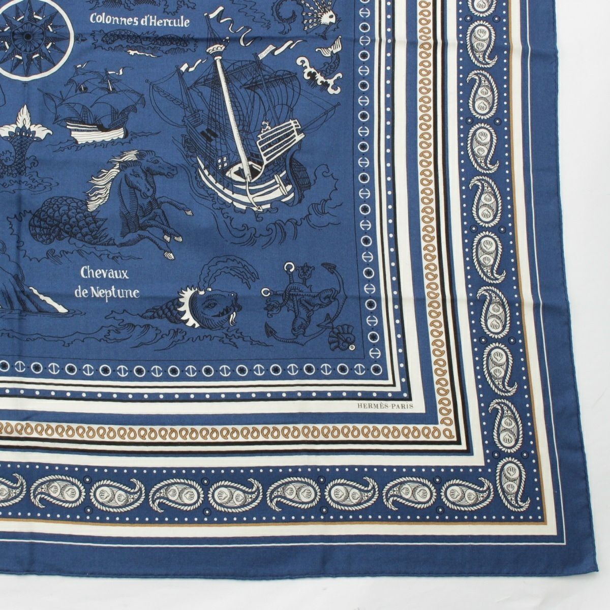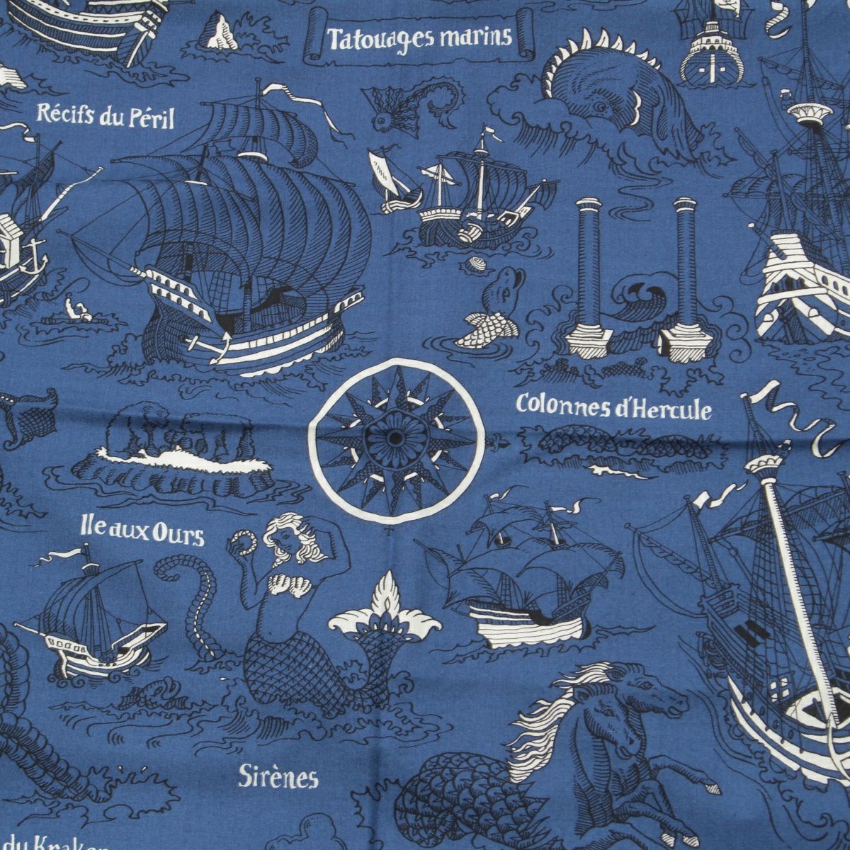 エルメス カレジェアン カシミヤ シルク 140 Tatouages Marins Bandana 船乗りのタトゥー ストール ブルー