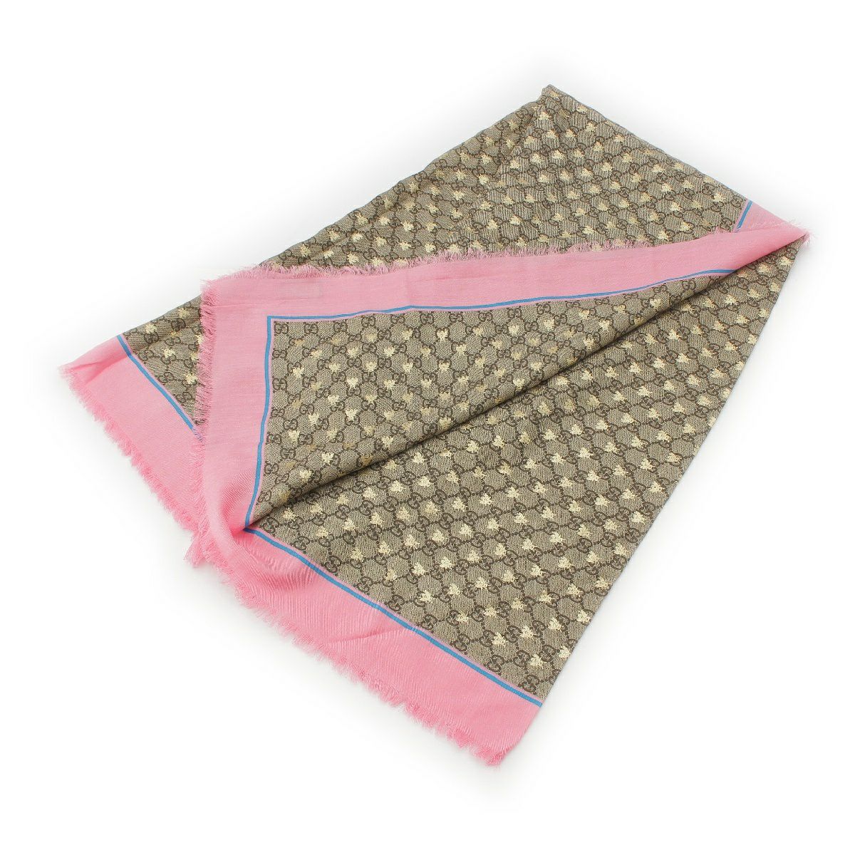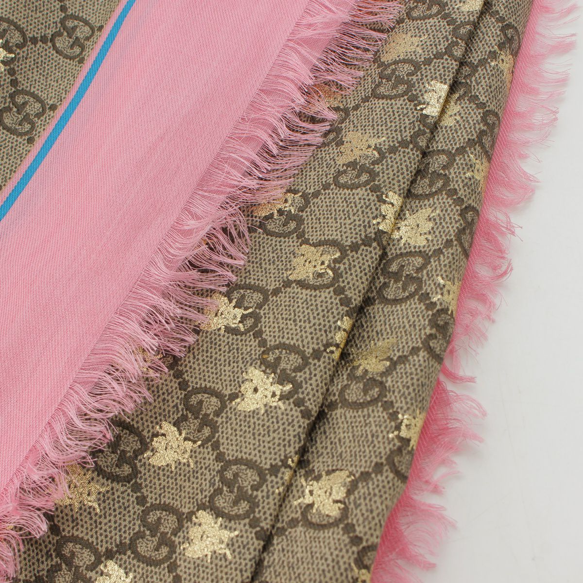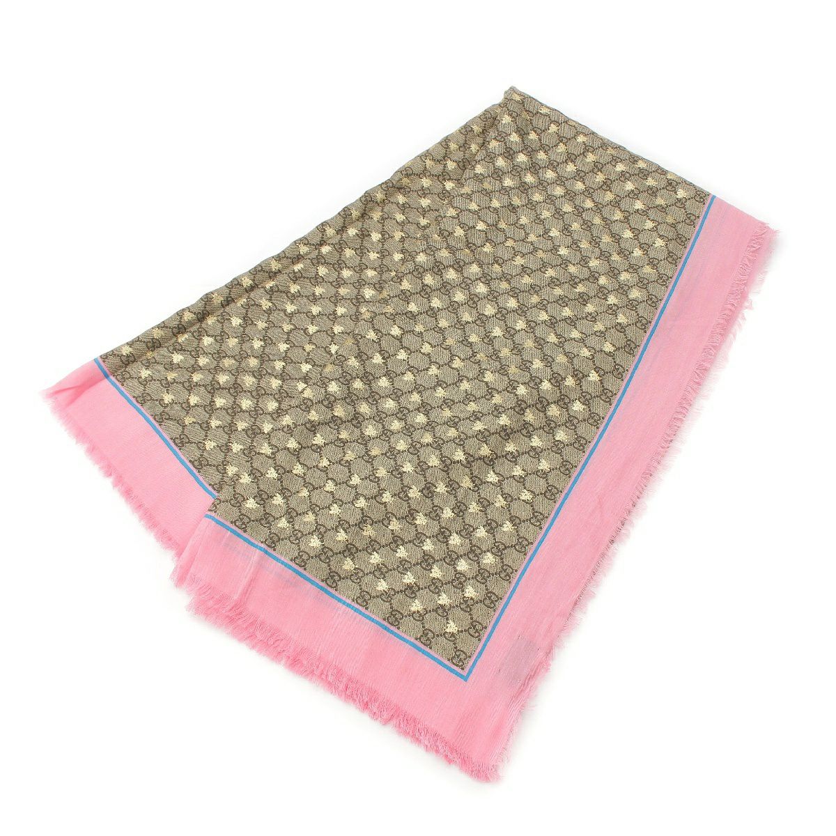 グッチ シルク GG柄 ビー bee フリンジ 大判 ストール スカーフ マフラー 551027 ベージュ ピンク