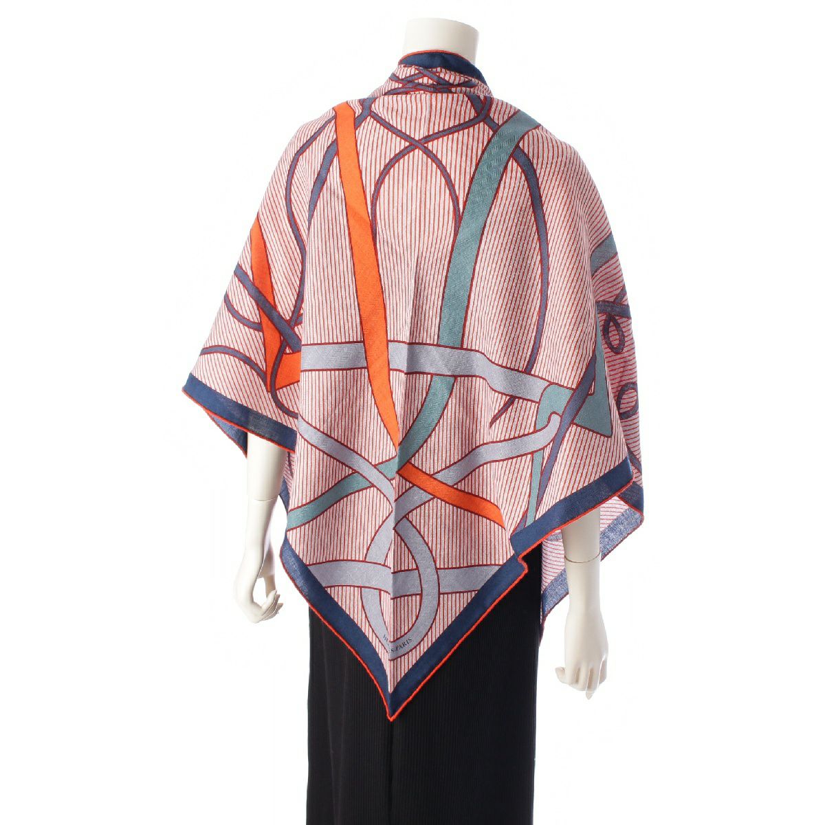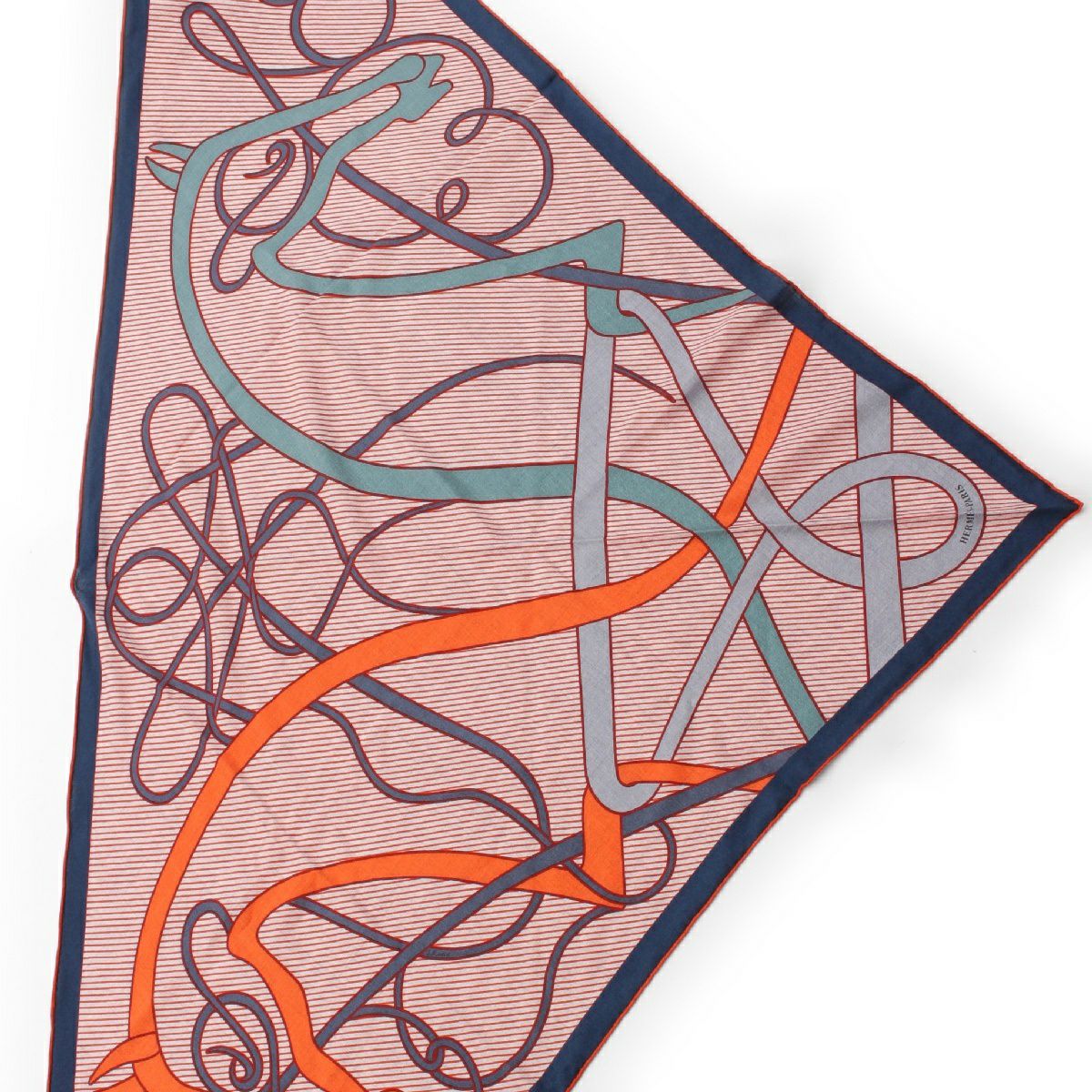 エルメス 24年 トライアングルジェアン Coup de Fouet Chemise 鞭 シュミーズ カシミヤ シルク 大判 ストール ショール スカーフ H364172S ネイビー オレンジ