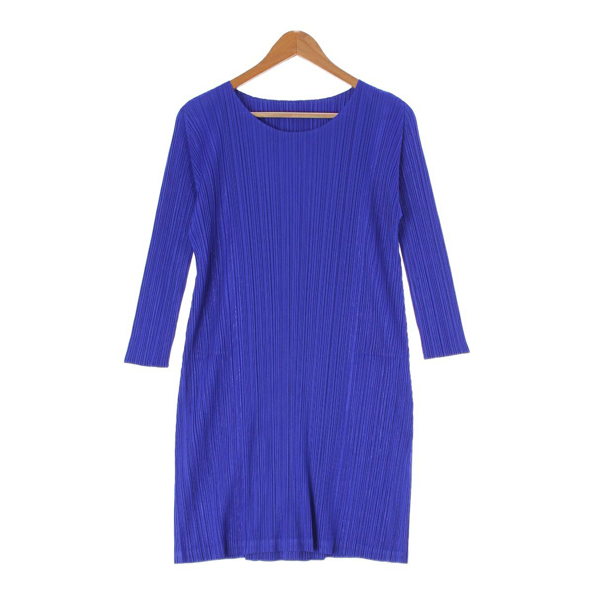 プリーツプリーズ イッセイミヤケ 16AW プリーツ クルーネック 長袖 ワンピース PP63-JT16 ブルー 3