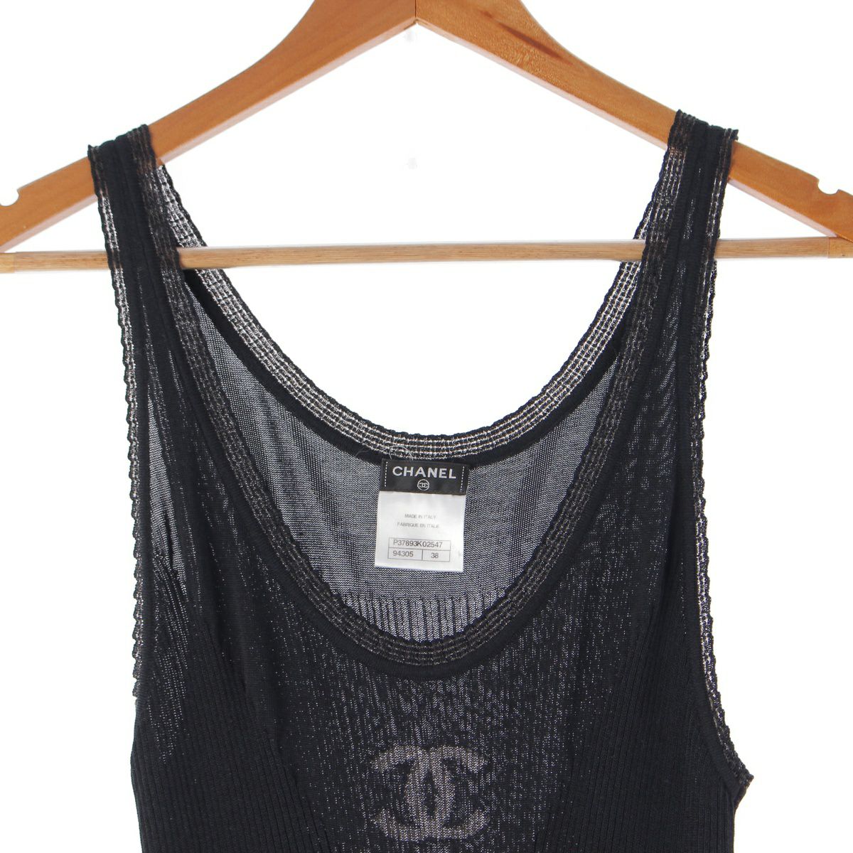 シャネル 10年 コットン シルク ココマーク リブニット ライオンボタン ワンピース ノースリーブ タンクトップ P37893 ブラック 38