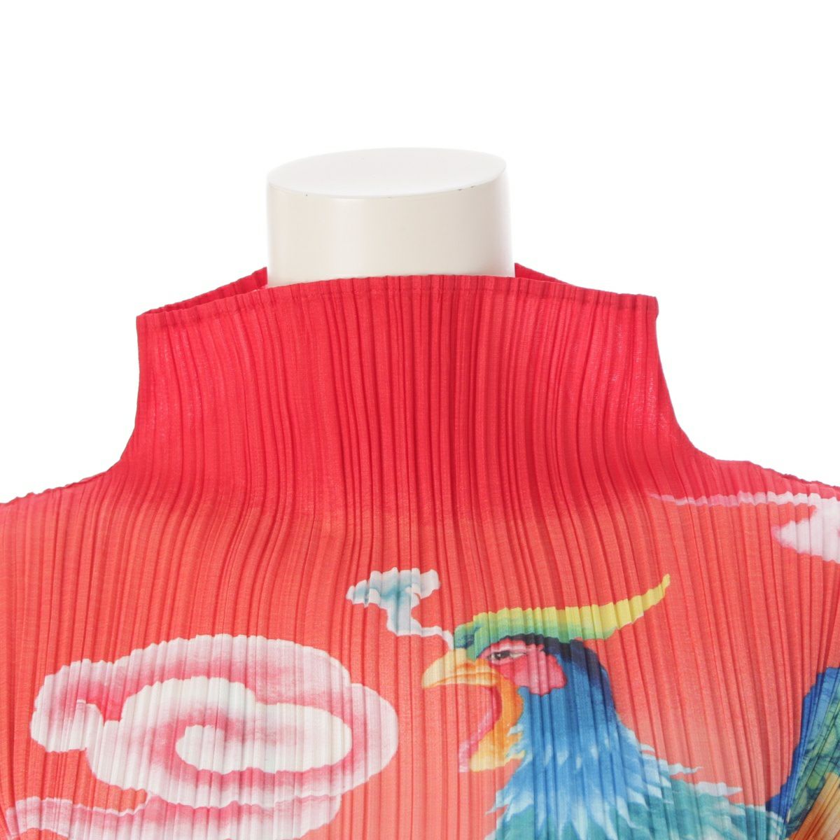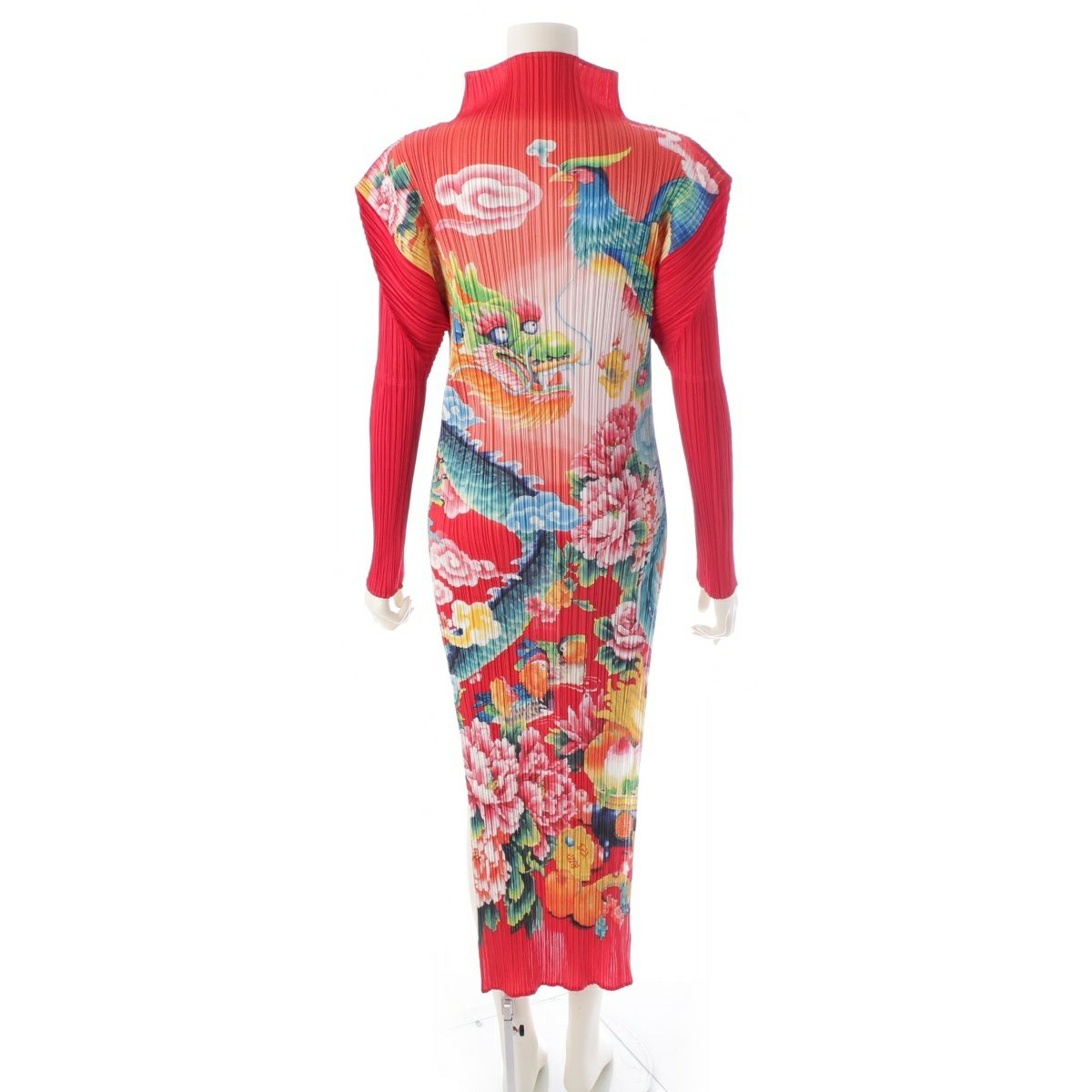 プリーツプリーズ イッセイミヤケ 1998 ドラゴン 龍 鳳凰 柄 ボトルネック ワンピース PP81-JH788 レッド マルチカラー 3