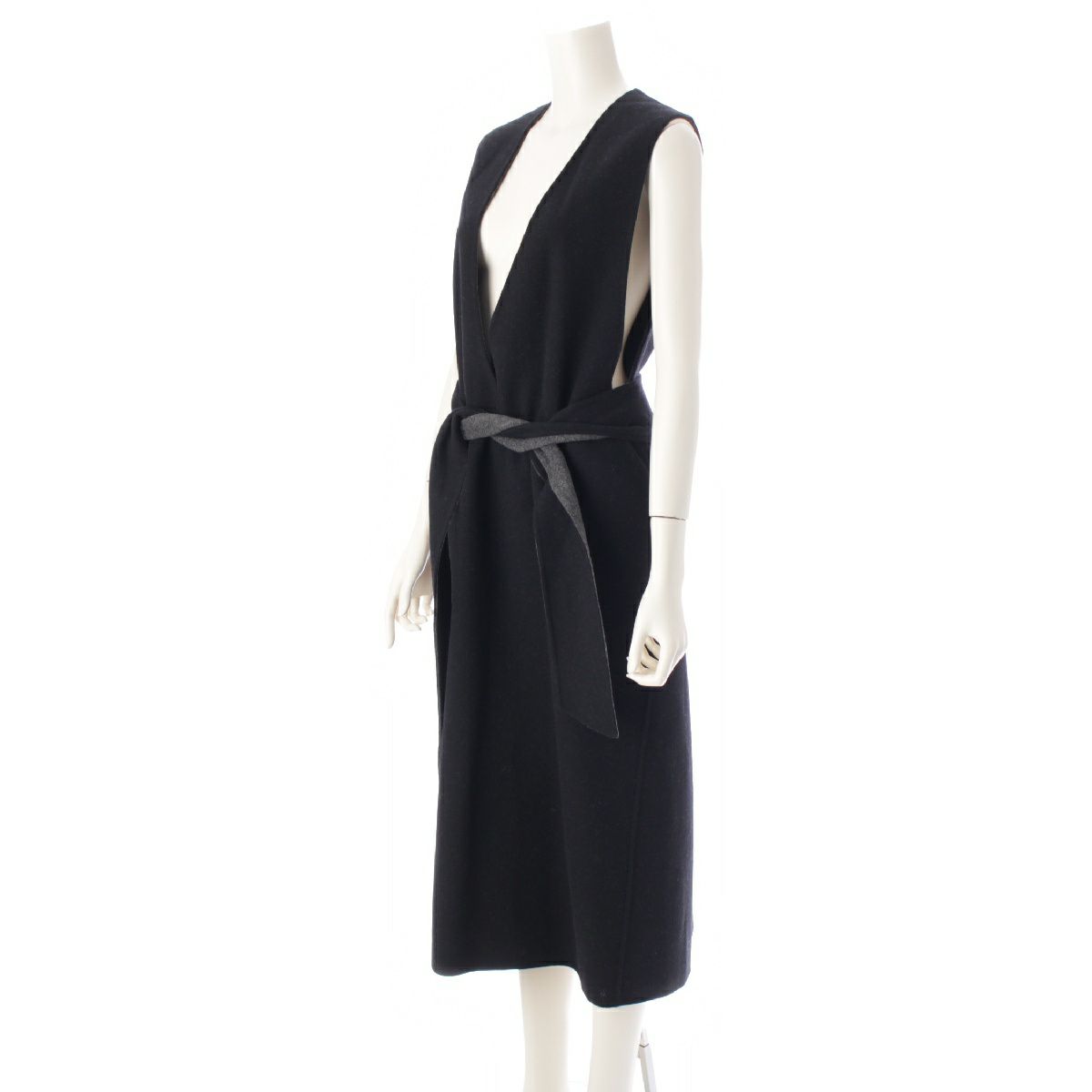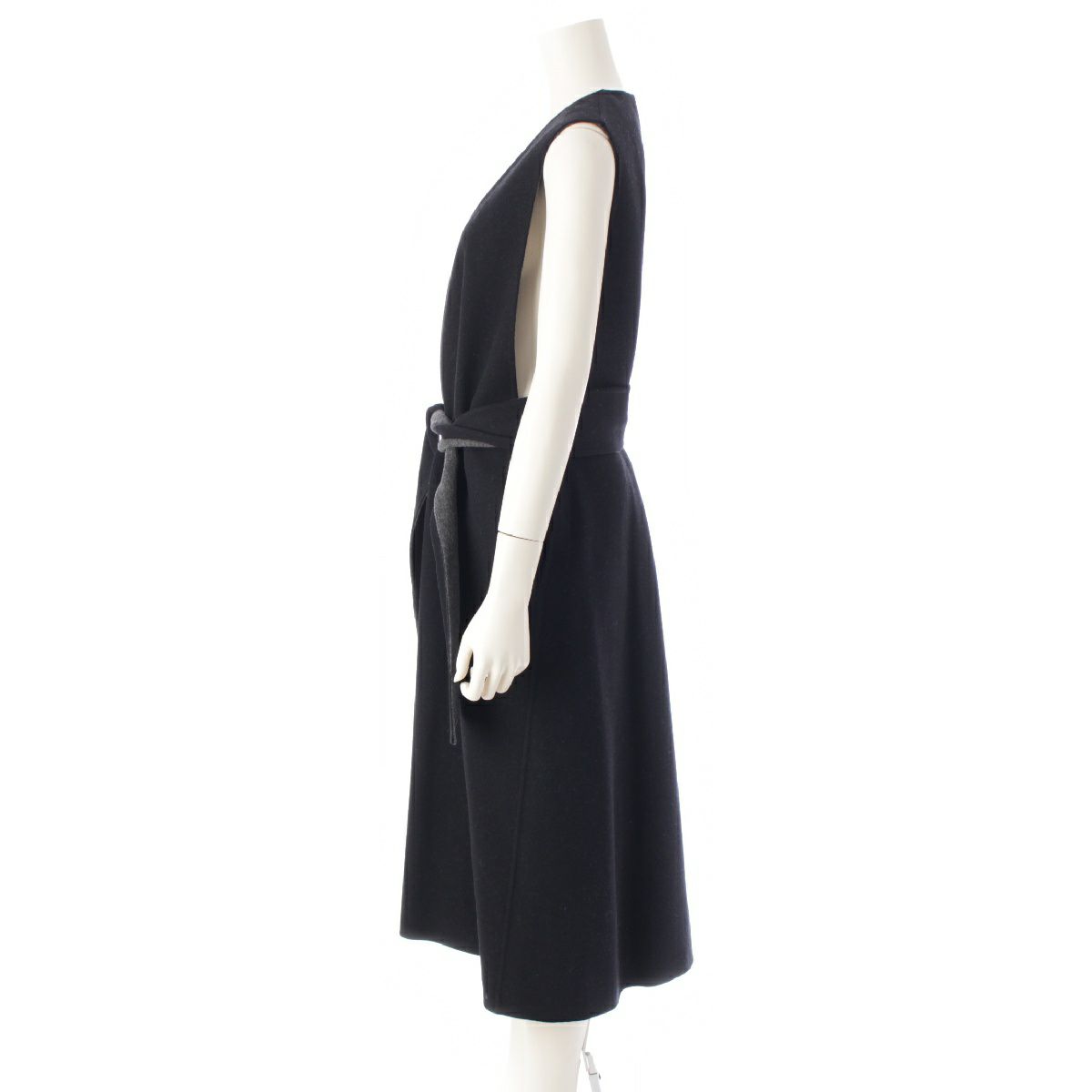 ドゥロワー 22年 ウール リバー Vネック ノースリーブ ワンピース ジャンパースカート 6526-234-1323 ブラック 36